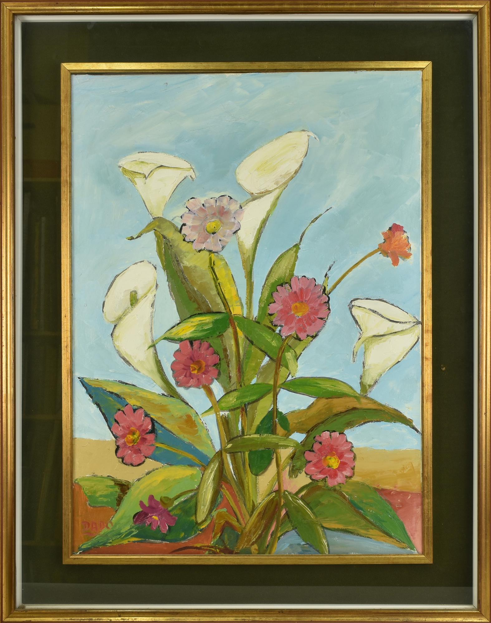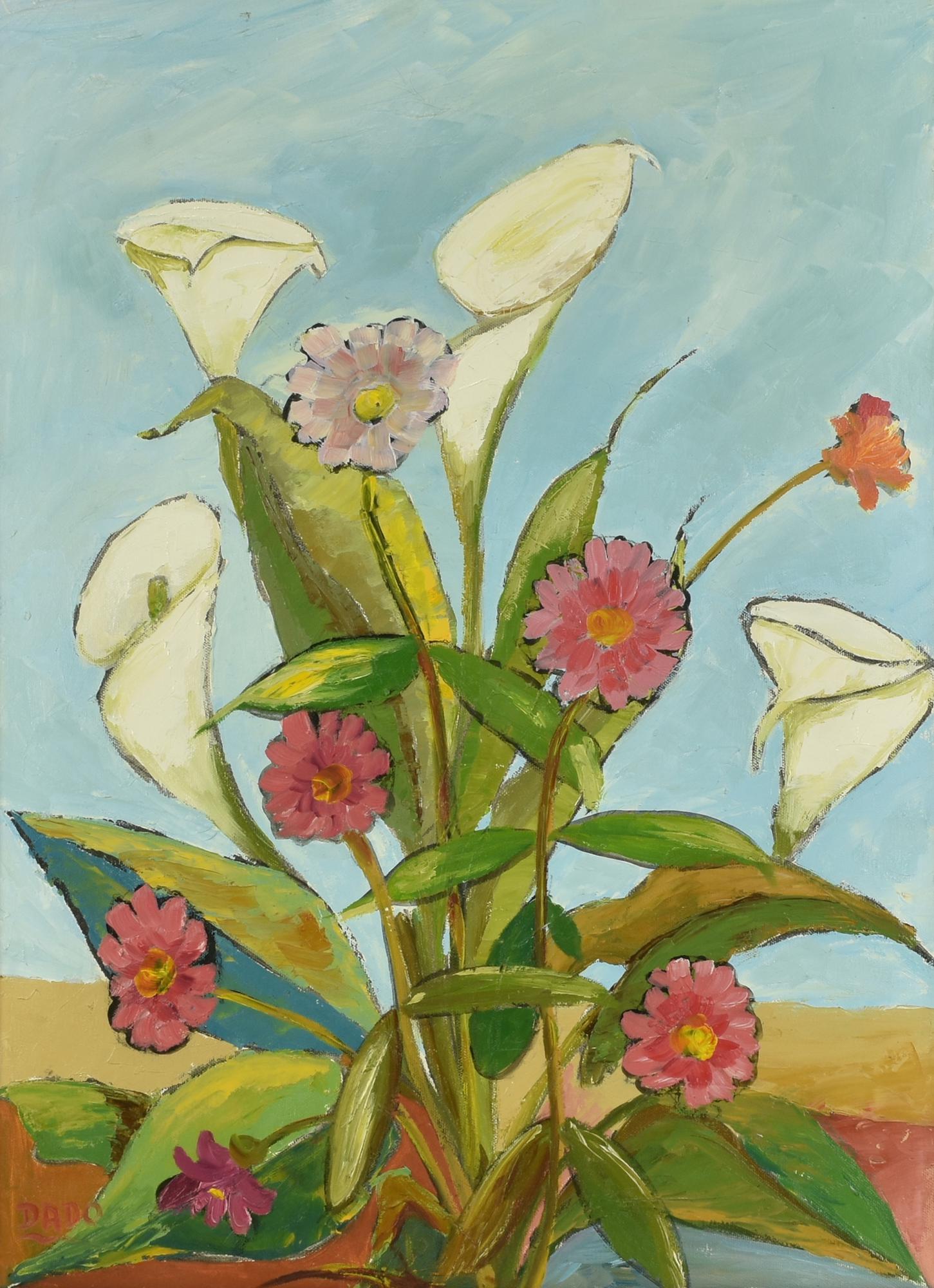 DADO (Don Agostino Dominoni) CALLE E ZINNIE olio su tela, cm 70x50 firma sul...