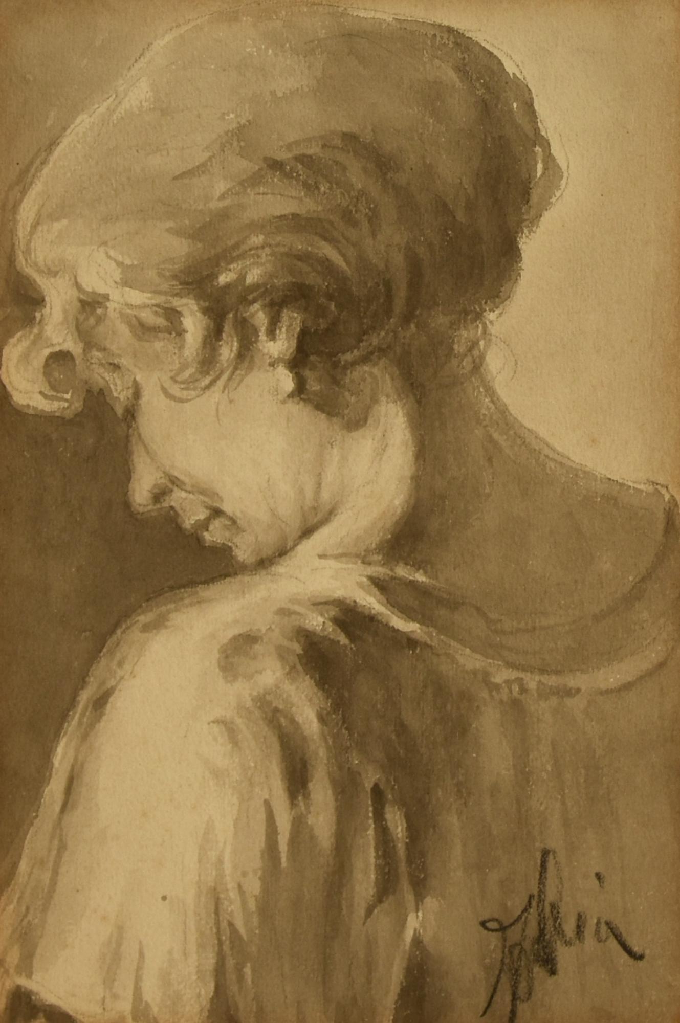 Ignoto VISO DI DONNA tecnica mista su carta, cm 20x13,5 firma lievi difetti