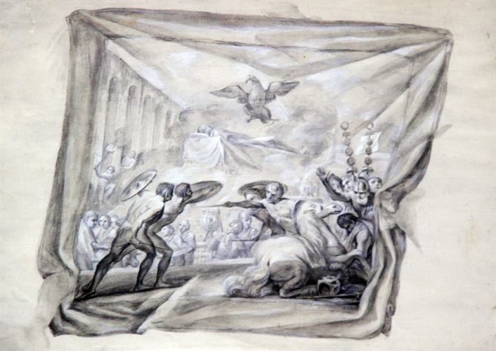 MINARDI TOMMASO (attribuito) 1787-1871 "Scena di battaglia" 26x36 disegno...