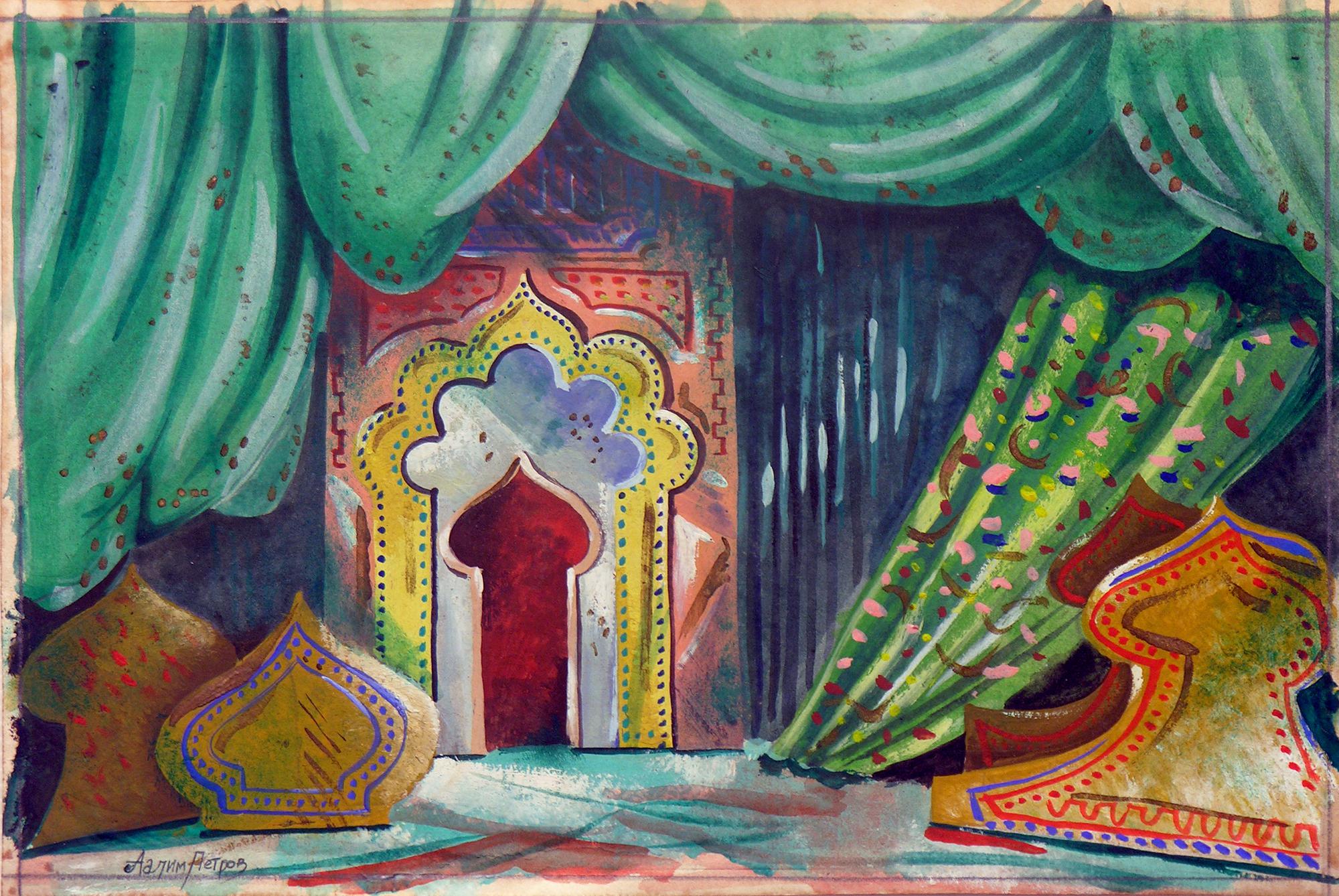 Aalim Petrov BOZZETTO PER LA SCENOGRAFIA TEATRALE DELL'OPERA SHAHARAZAD DI...