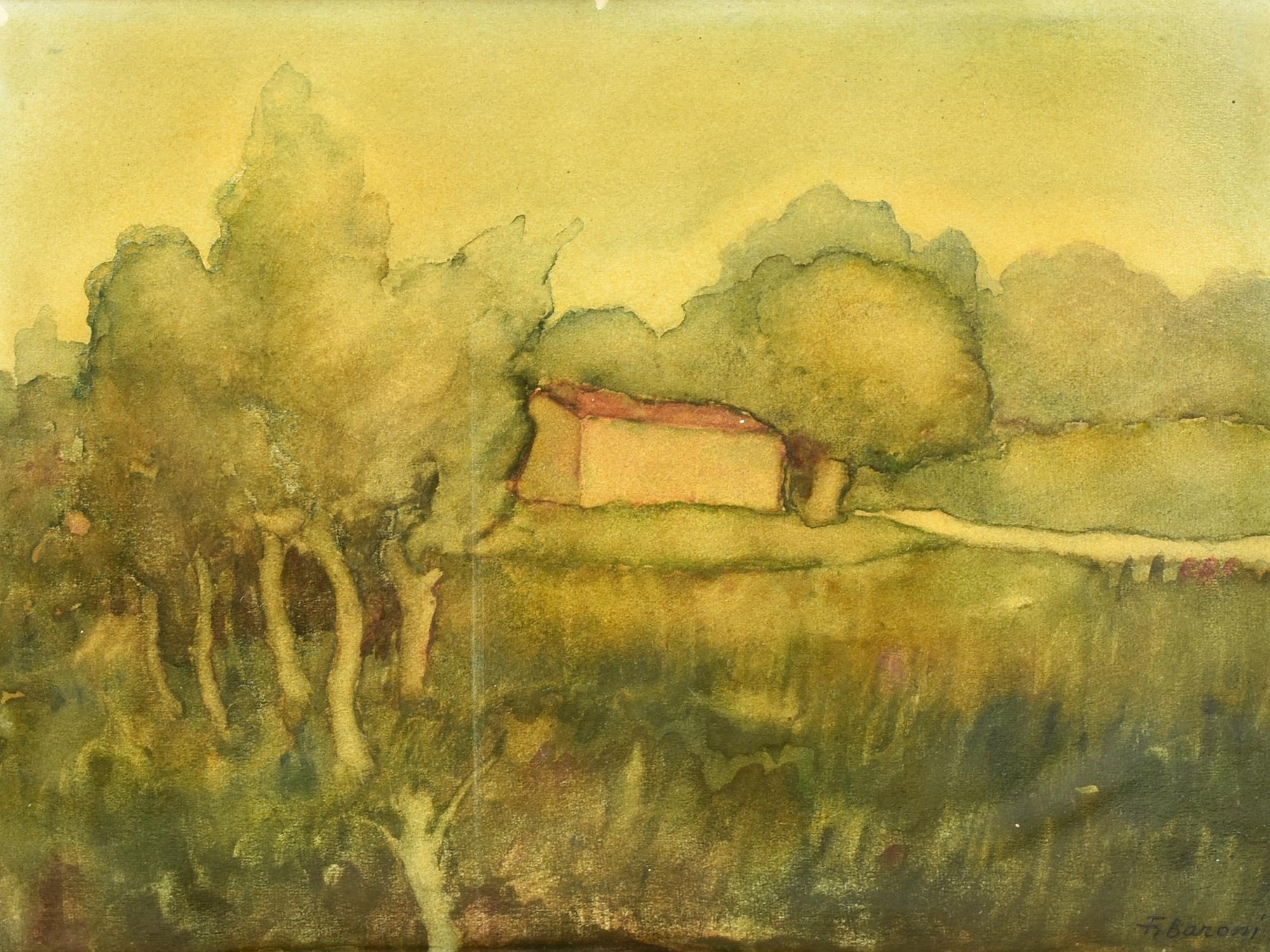 Lotto 179 | Franco Baroni PAESAGGIO tecnica mista su carta, cm 22x30 firma