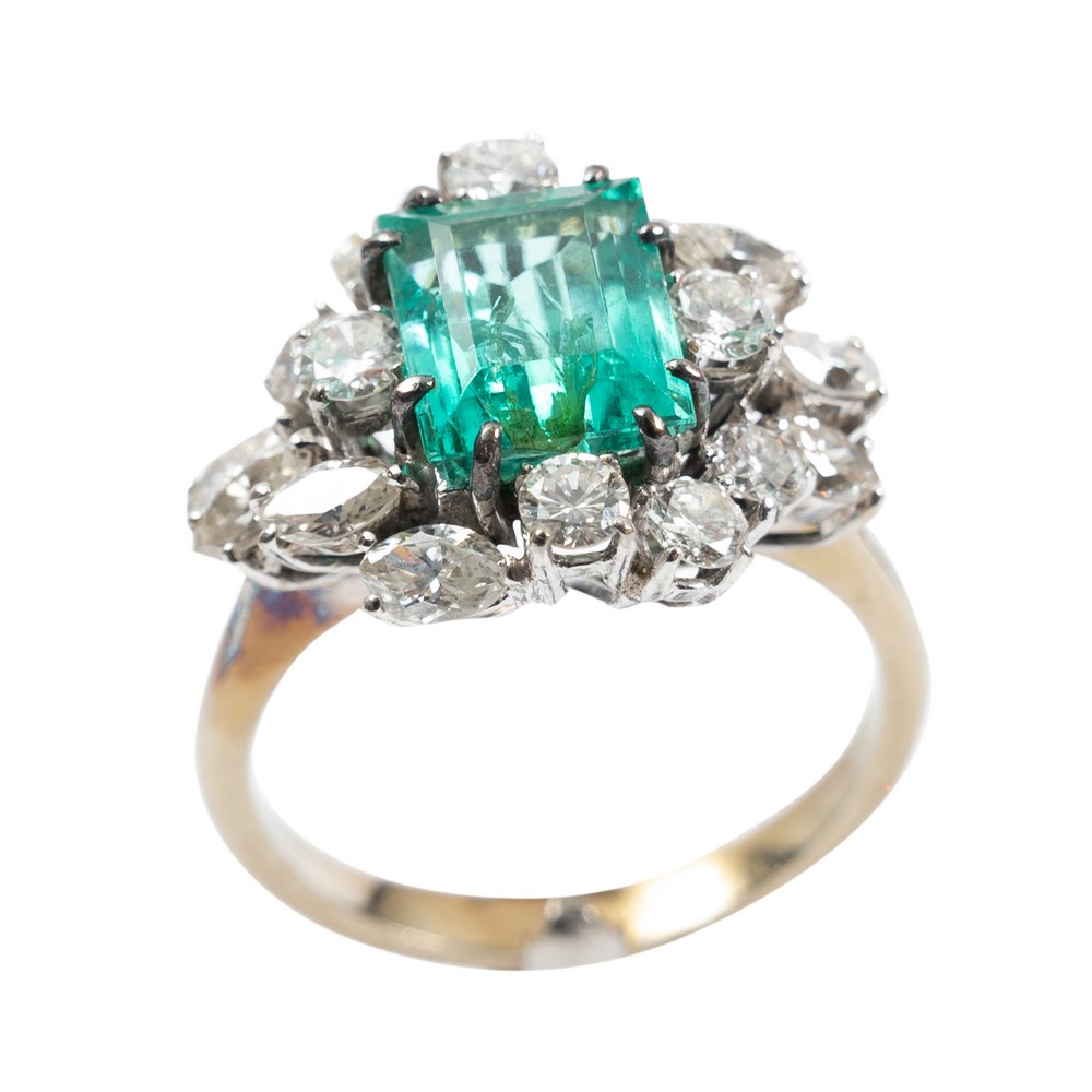 ANELLO in oro 18 KT con smeraldo e diamanti taglio misto