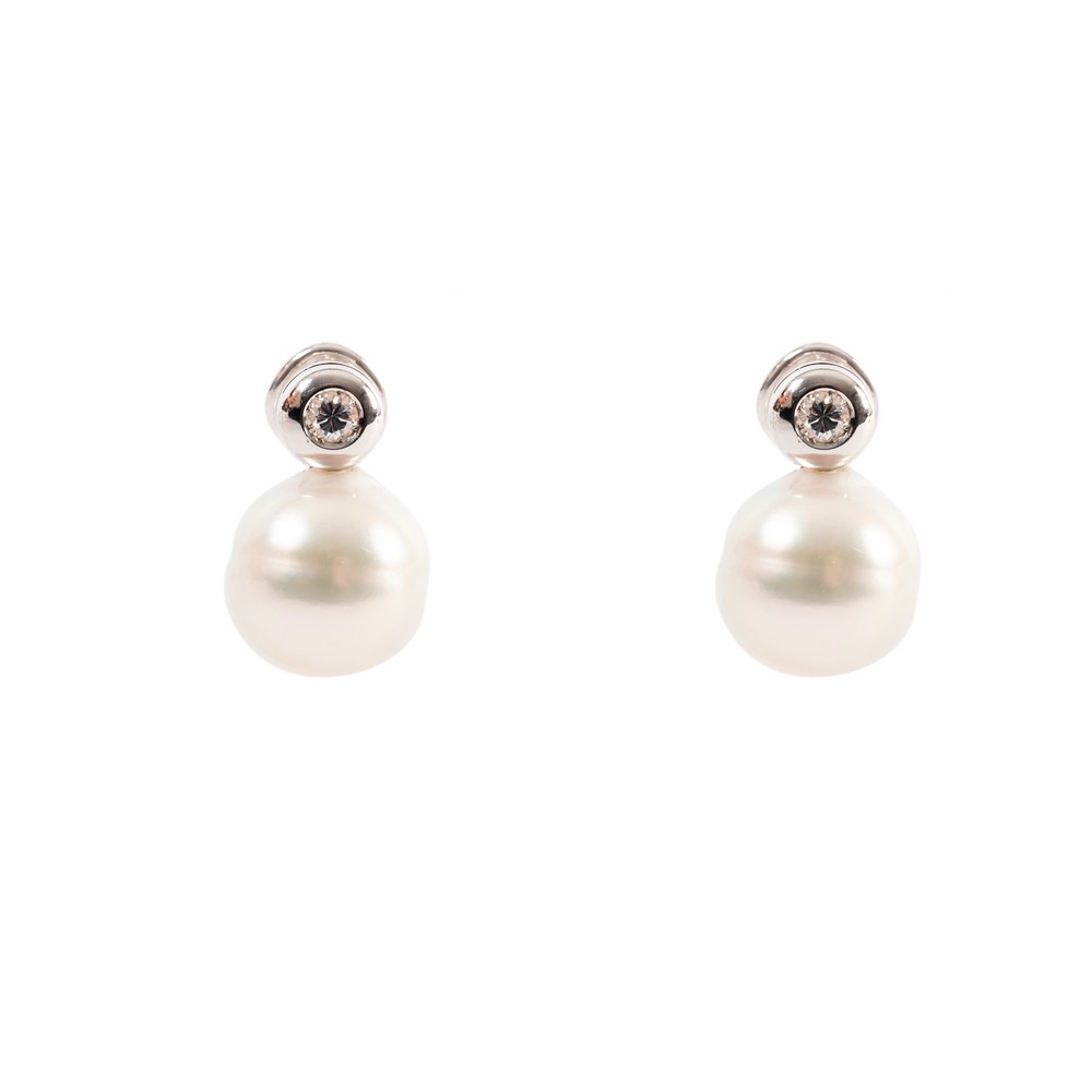 ORECCHINI in oro bianco 18 KT con perle australiane ct. 25 peso di stima con diamanti taglio brillante ct. 0,25 G color VS1 (g. 11,50).