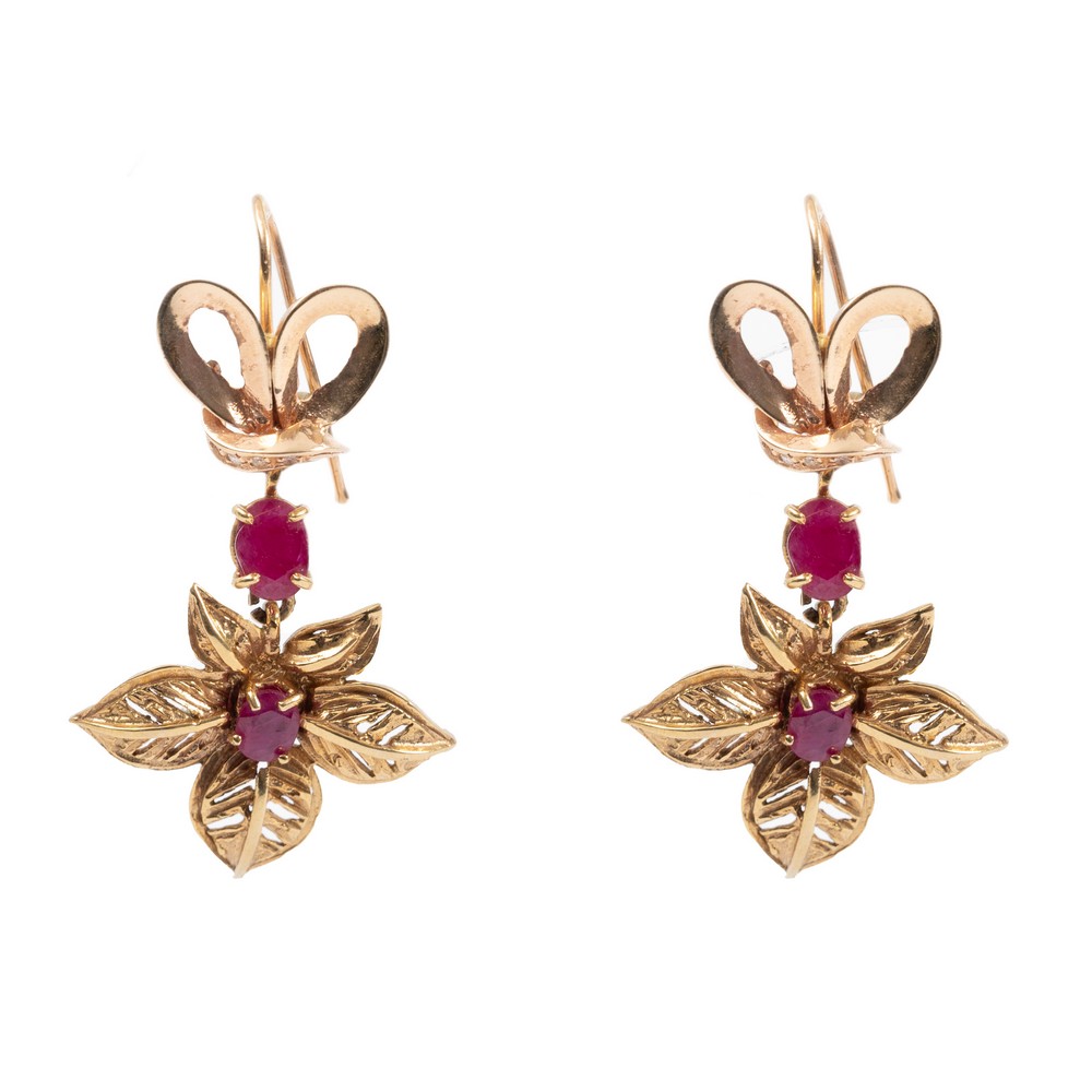 ORECCHINI in oro giallo 12 KT con diamanti e rubini