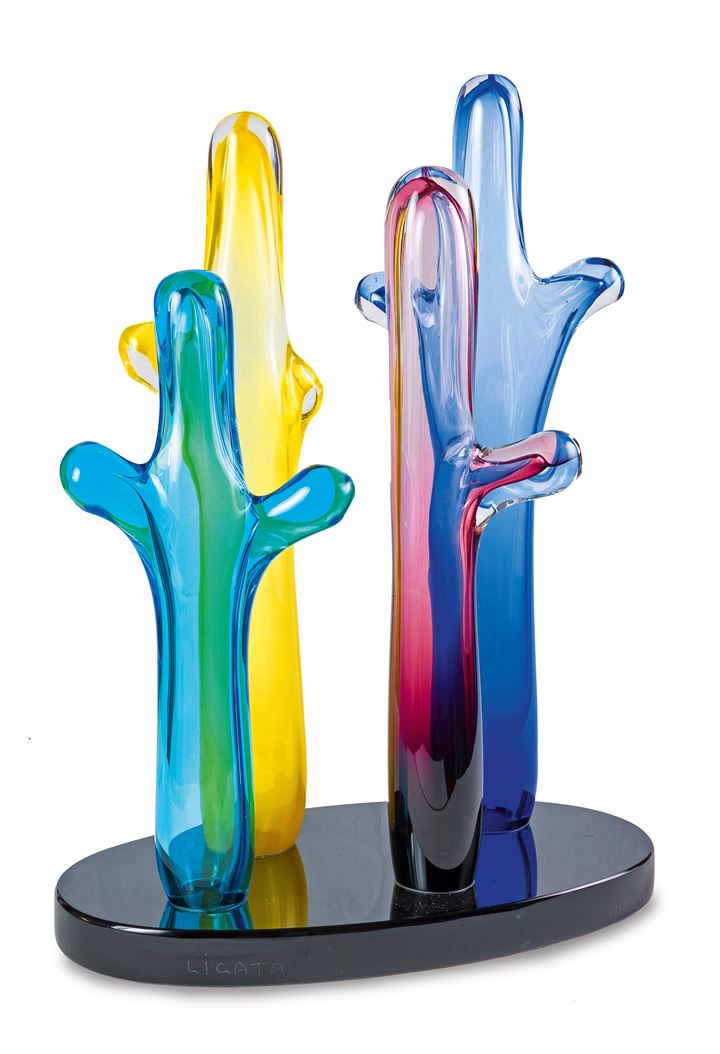 H. cm 39 scultura composta da quattro elementi in vetro policromo