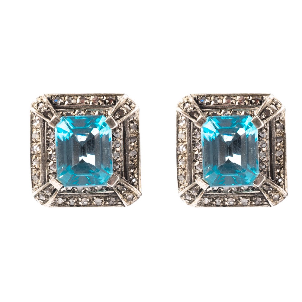 ORECCHINI in oro giallo 9 KT e argento con diamanti ct. 0,35 e pietre di sintesi (g. 14,00).