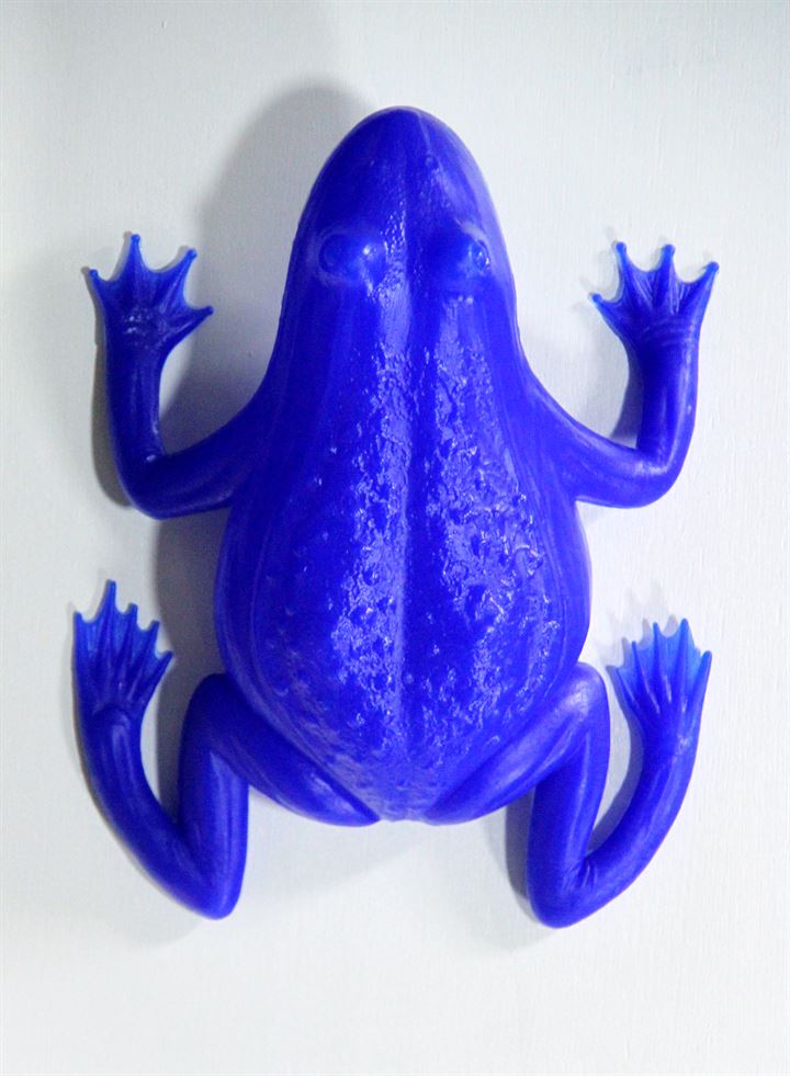 CRACKING ART GROUP "Rana" Multiplo in plastica blu montato su base di legno,...