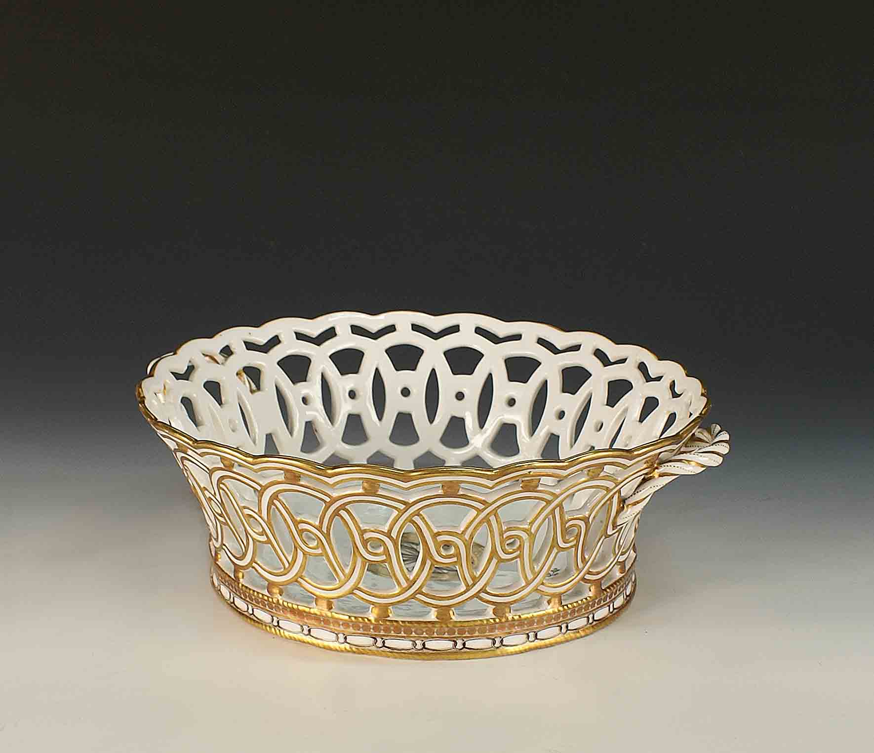 Centrotavola traforato in porcellana bianca e parzialmente dorata, Parigi,...