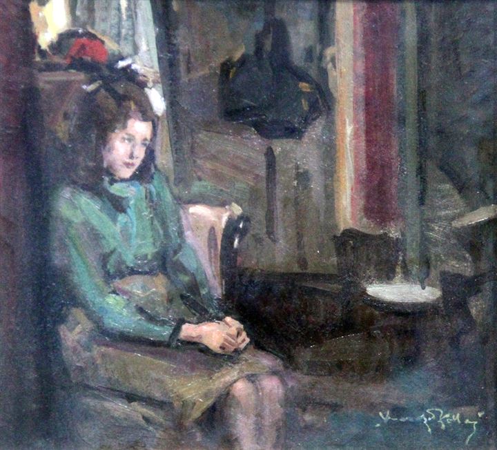 ZOLLA VENANZIO GB 1880 - 1961 Torino "Interno con ragazza" 29x31,5 olio su...
