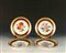 Quattro piatti in porcellana dipinta a policromia e parzialmente dorata,...