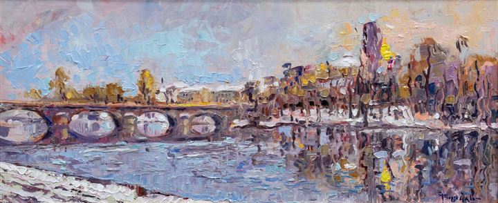 GALLO BEPPE Castagnole Lanze (AT) 1942 "Inverno lungo il Po" 2010 30x70 olio...