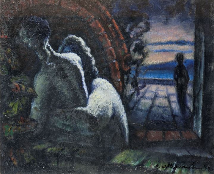 ALIMANDI ENRICO Torino 1910 - 1984 "Amanti" 1970 45x55 olio su tela Opera...