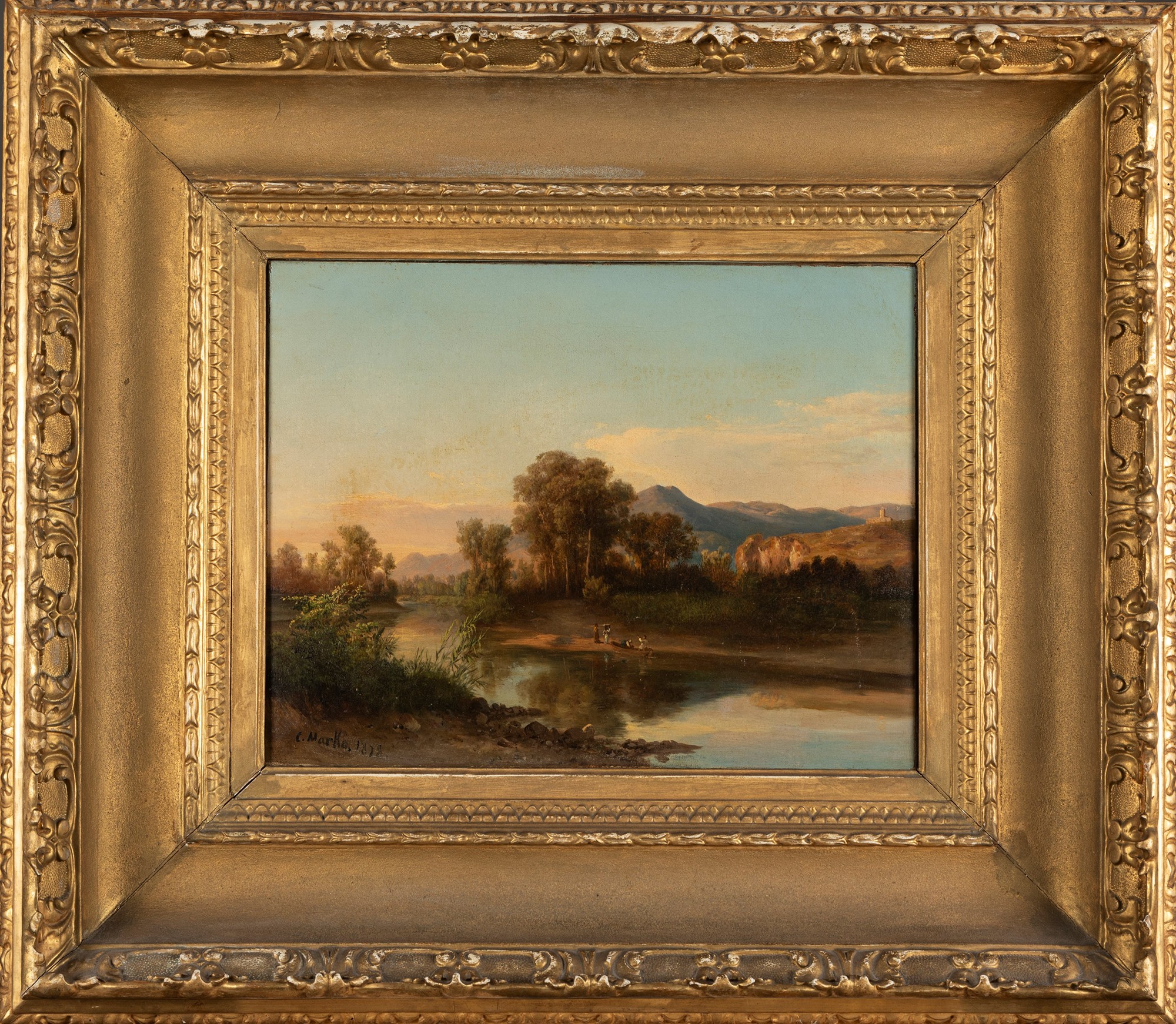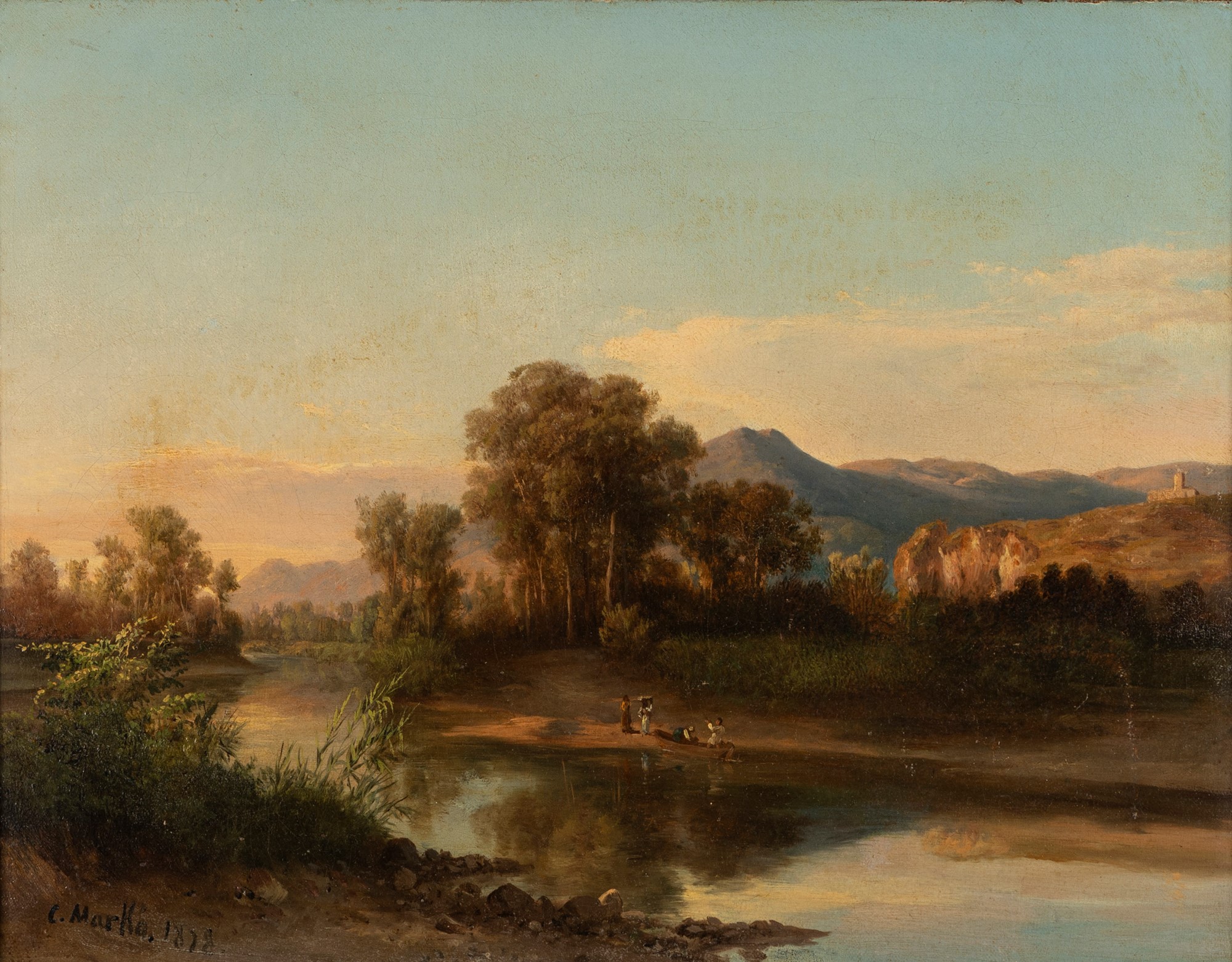 Carlo Markò il Giovane (Budapest 1822-Mosca 1891) - Caprona, figure sull'Arno, 1878