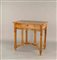Tavolino in noce filettato, piano rettangolare poggiante su fascia centrata...