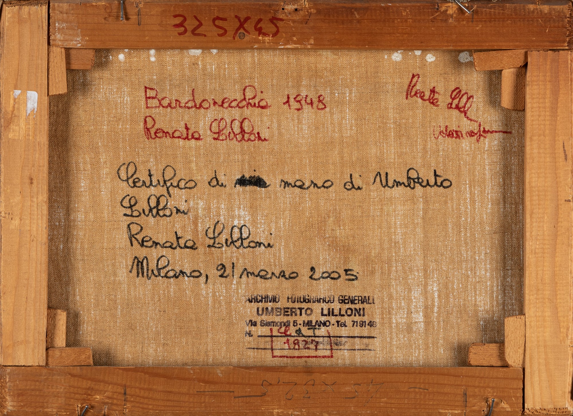 al retro, sul supporto, timbro dell'Archivio Fotografico Generale Umberto Lilloni (con progressivo n. 1827) e autentica di Renata Lilloni