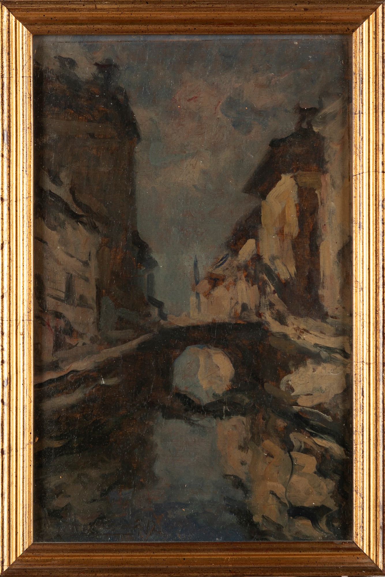 Achille Cattaneo (Limbiate 1872-Milano 1931) - Scorcio di Naviglio a Milano, 1917