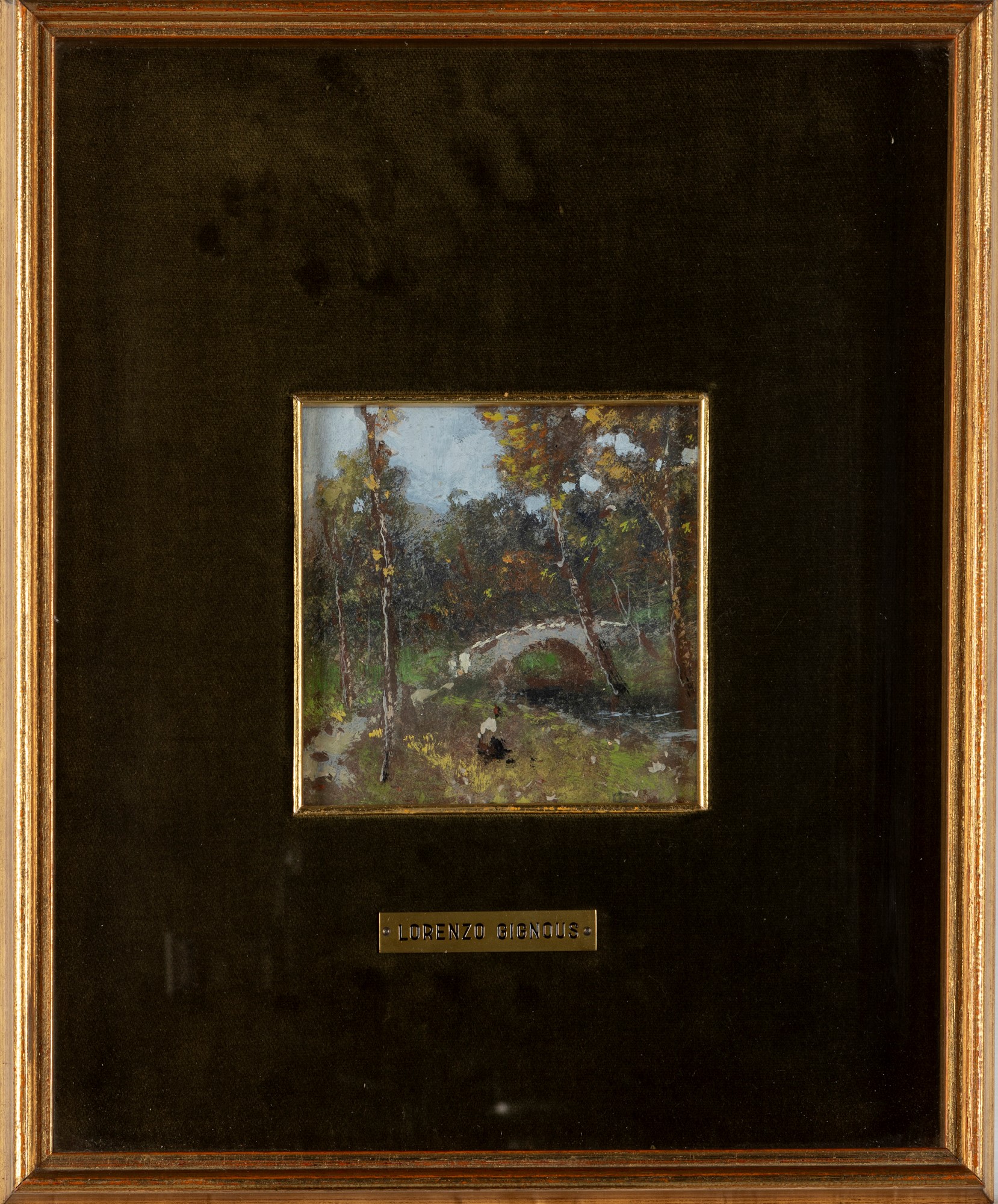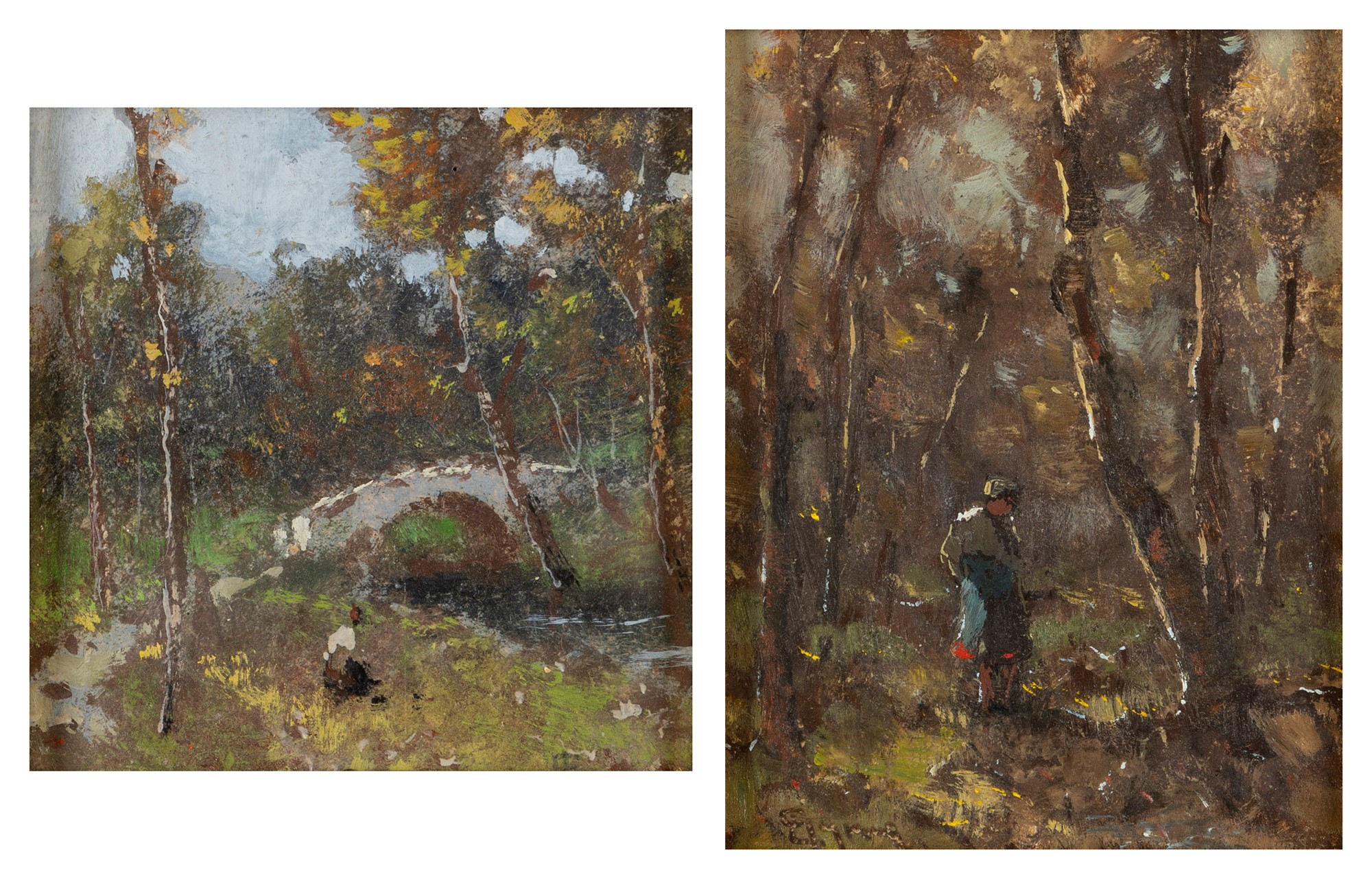 Lorenzo Gignous (Modena 1862-Porto Ceresio 1958) - Il ponte di pietra; Figura nel bosco