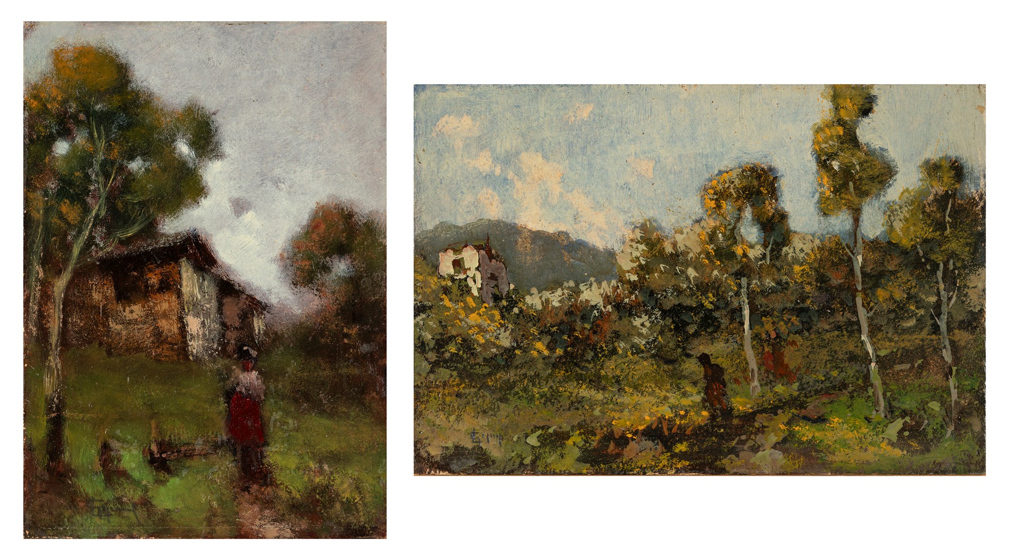 Lorenzo Gignous (Modena 1862-Porto Ceresio 1958) - Verso casa; Nel bosco