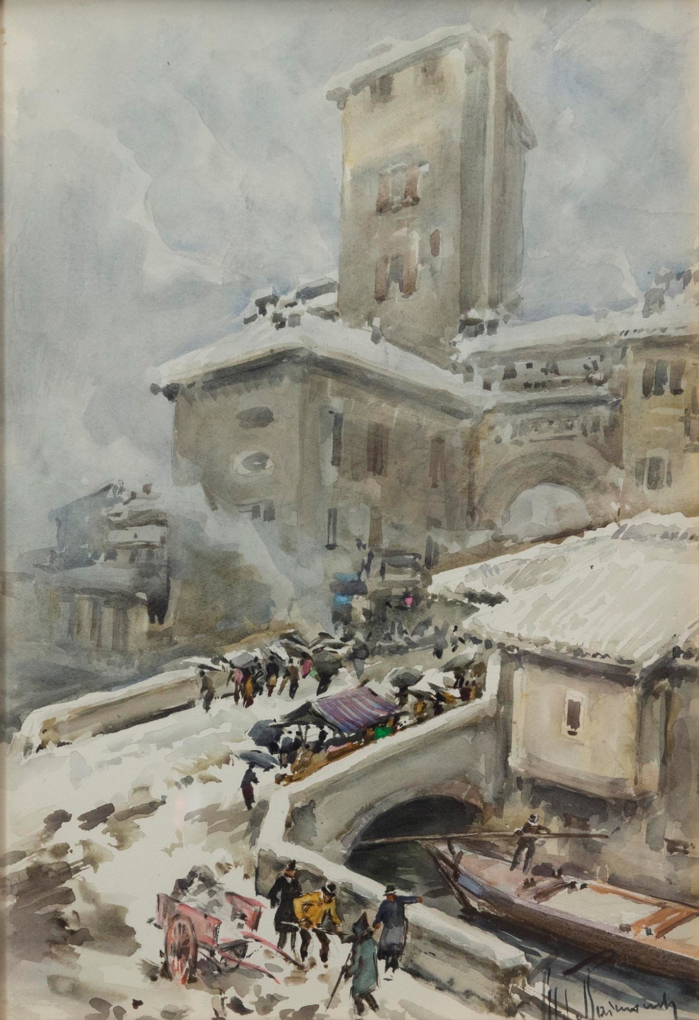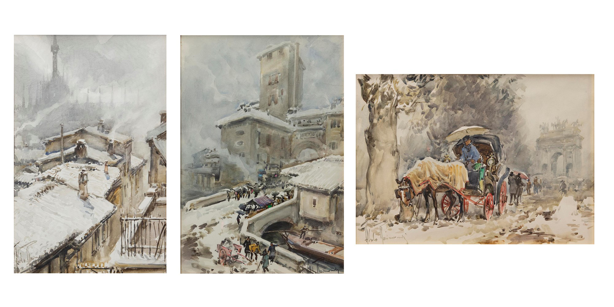 Aldo Raimondi (Roma 1902-Milano 1998) - Vedute di Milano: verso il Duomo; Naviglio; Arco della Pace