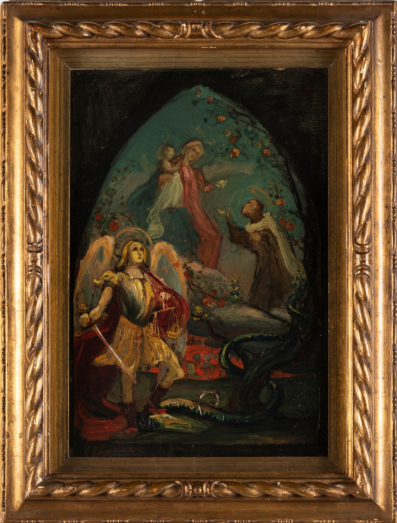 Ponziano Loverini (Gandino 1845-1929) - Bozzetto per pala d'altare (Apparizione della Vergine a un santo domenicano e San Michele Arcangelo)