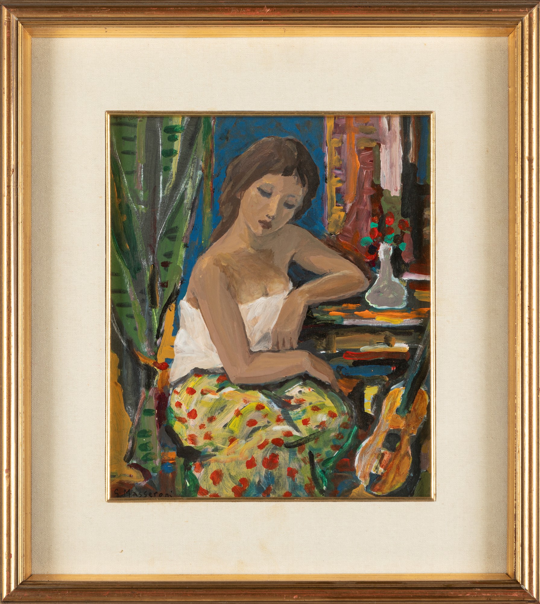 Giulio Masseroni (Bergamo 1900-1980) - Donna con chitarra, 1973