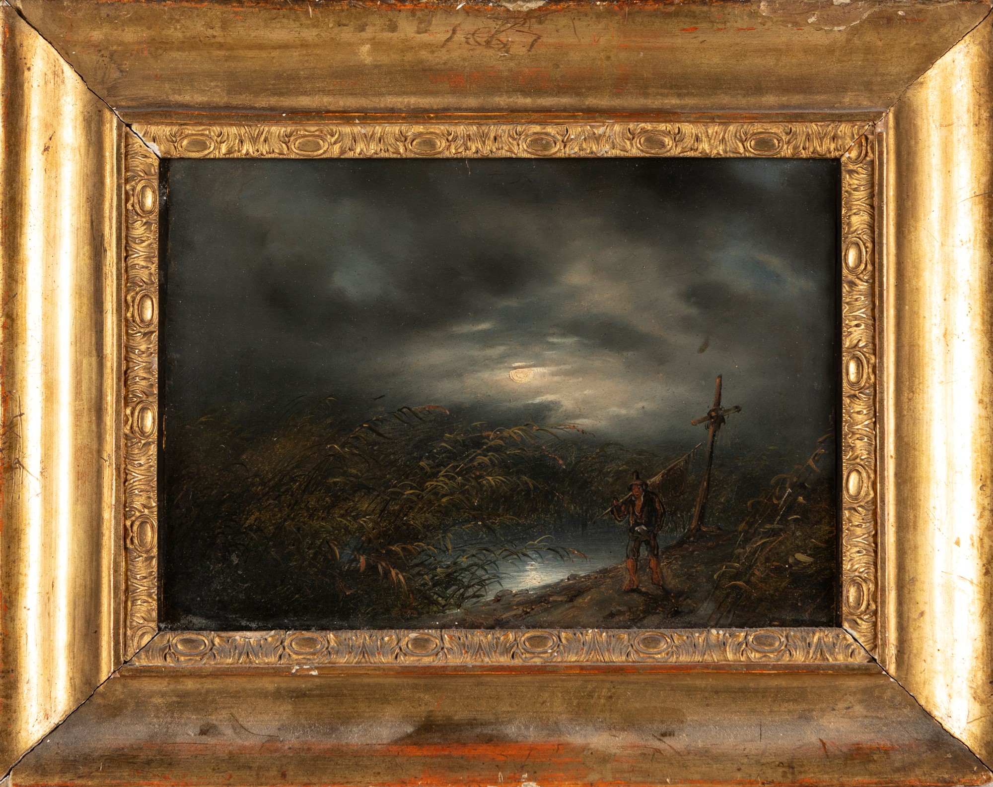 Scuola lombarda, secolo XIX - Viandante al chiaro di luna