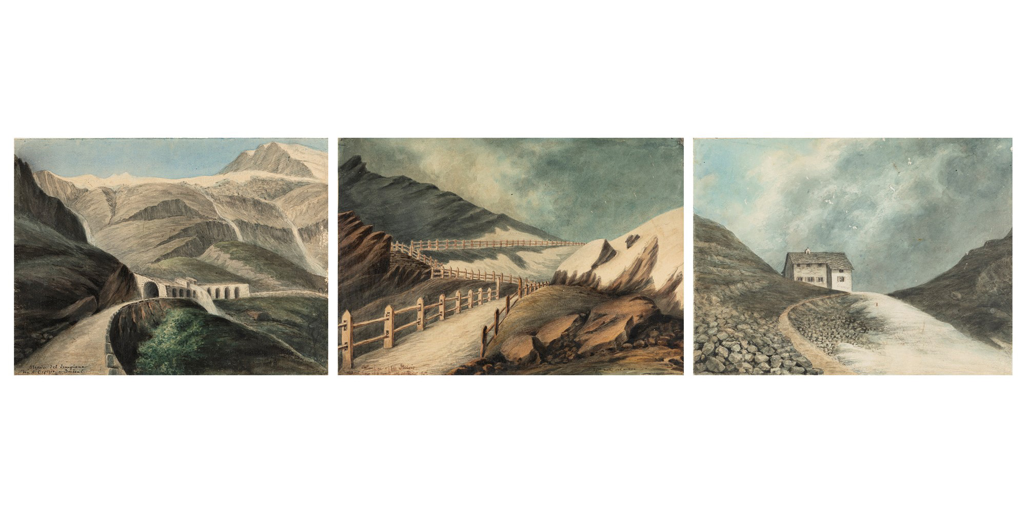 Felice Muletti (attivo tra il secolo XIX e il secolo XX) - Giogo dello Stelvio; Strada del Sempione; Ospizio di Valdobbia