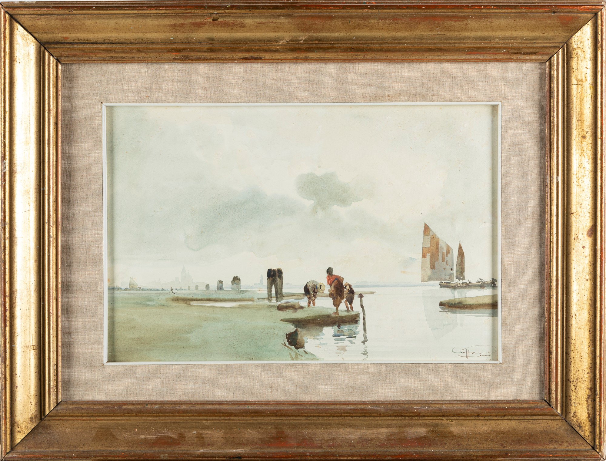 Aurelio Craffonara (Gallarate 1875-Genova 1945) - Sulla laguna veneziana, 1914