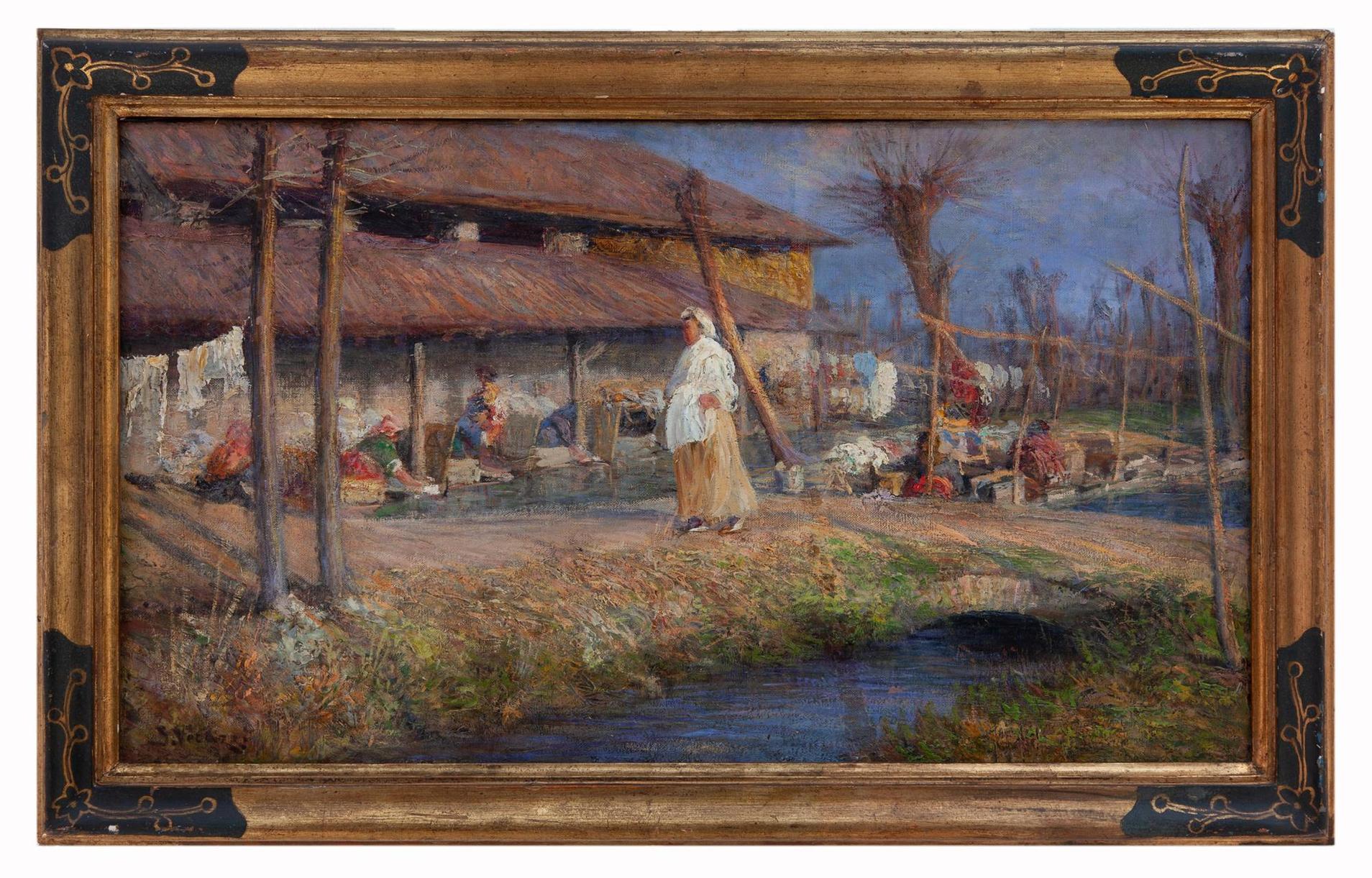 Serafino Verazzi Meina (NO) 1875 - Novara 1945 Le lavandaie Olio su tela cm 40x70