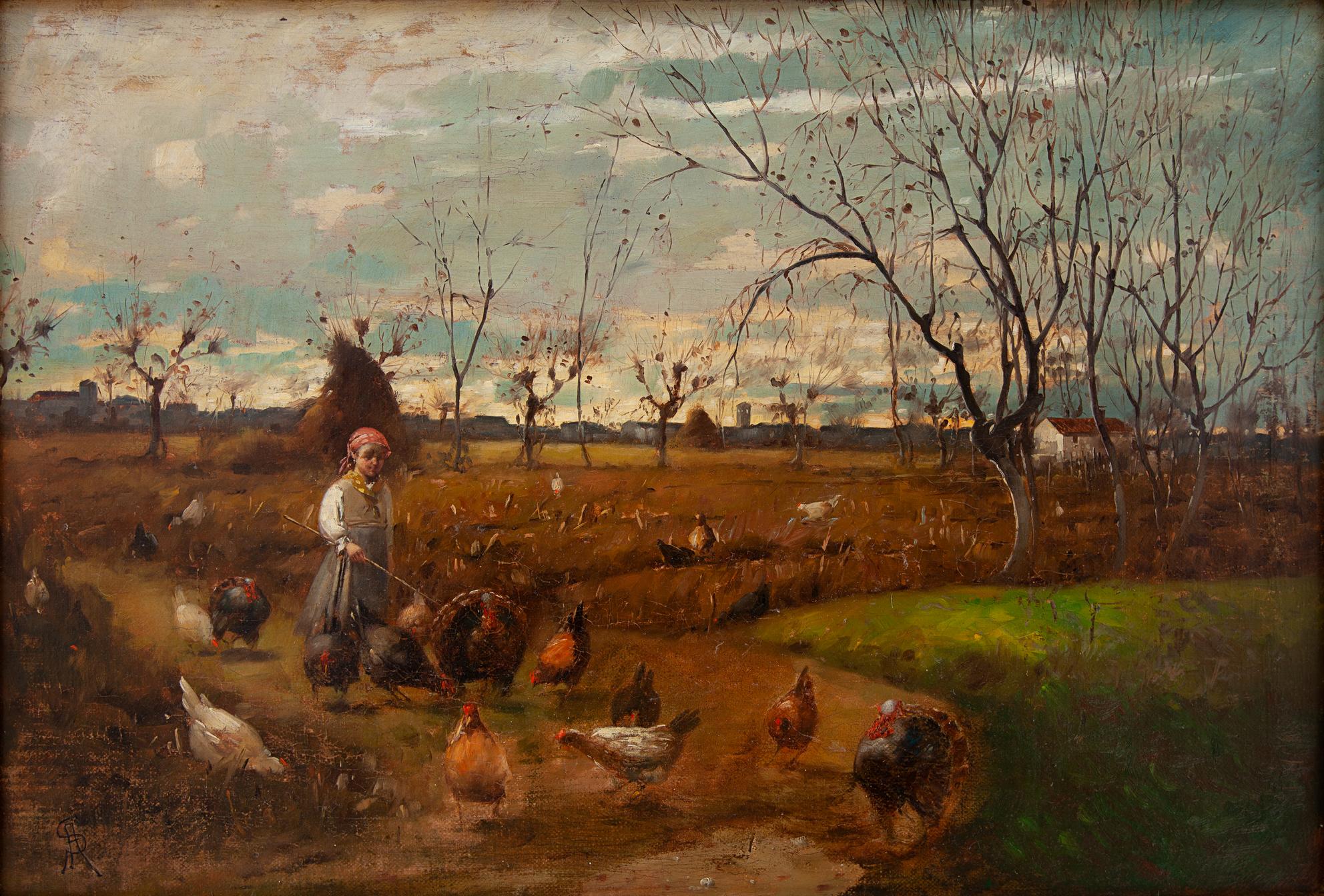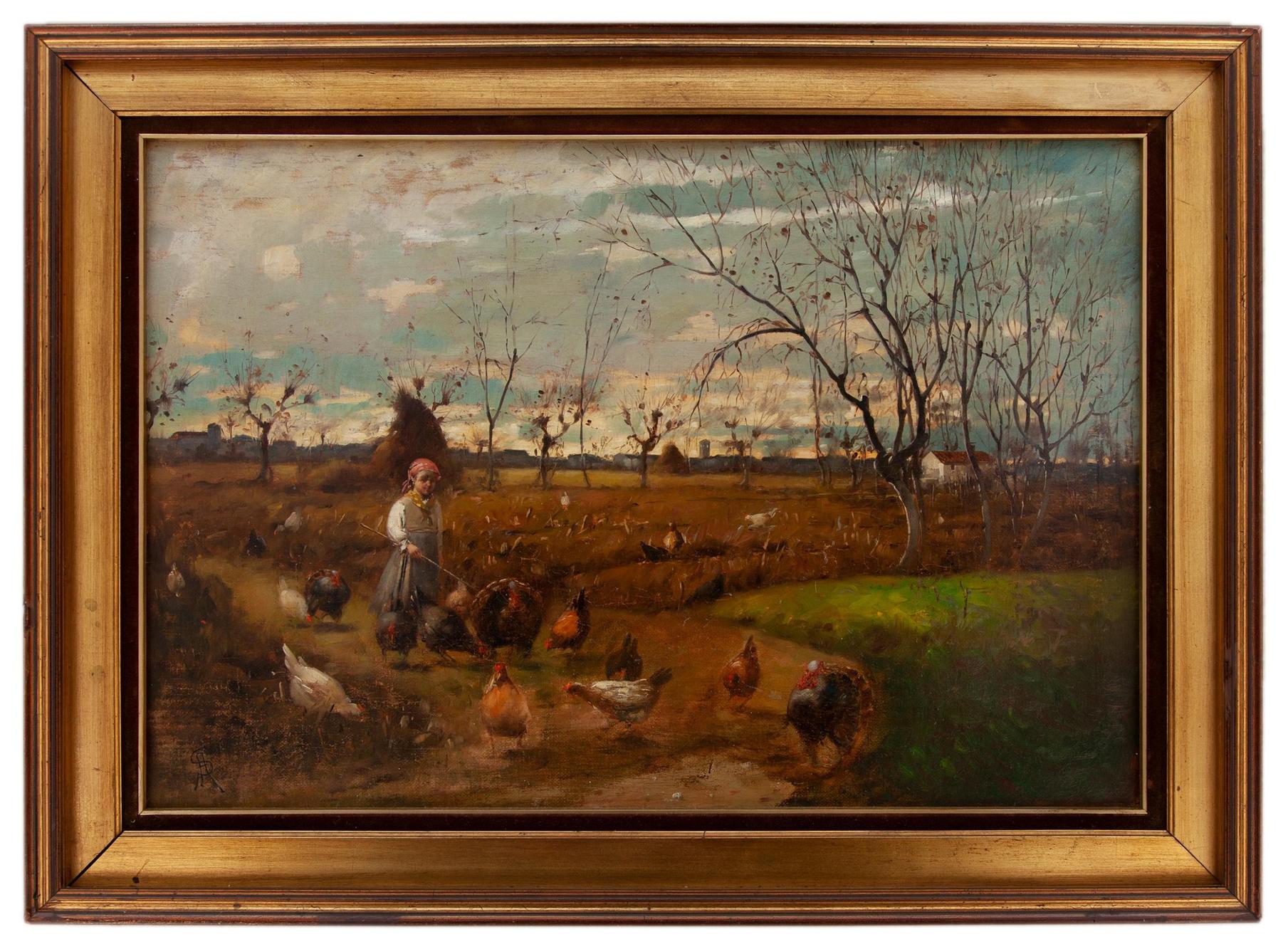 Augusto Sezanne Firenze 1856 - Venezia 1935 La giovane guardiana Olio su tela cm 54x77