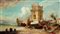 GAMBA ENRICO Torino 1831 - 1883 "La torre di Belem" 1873 circa 35x62 olio su...