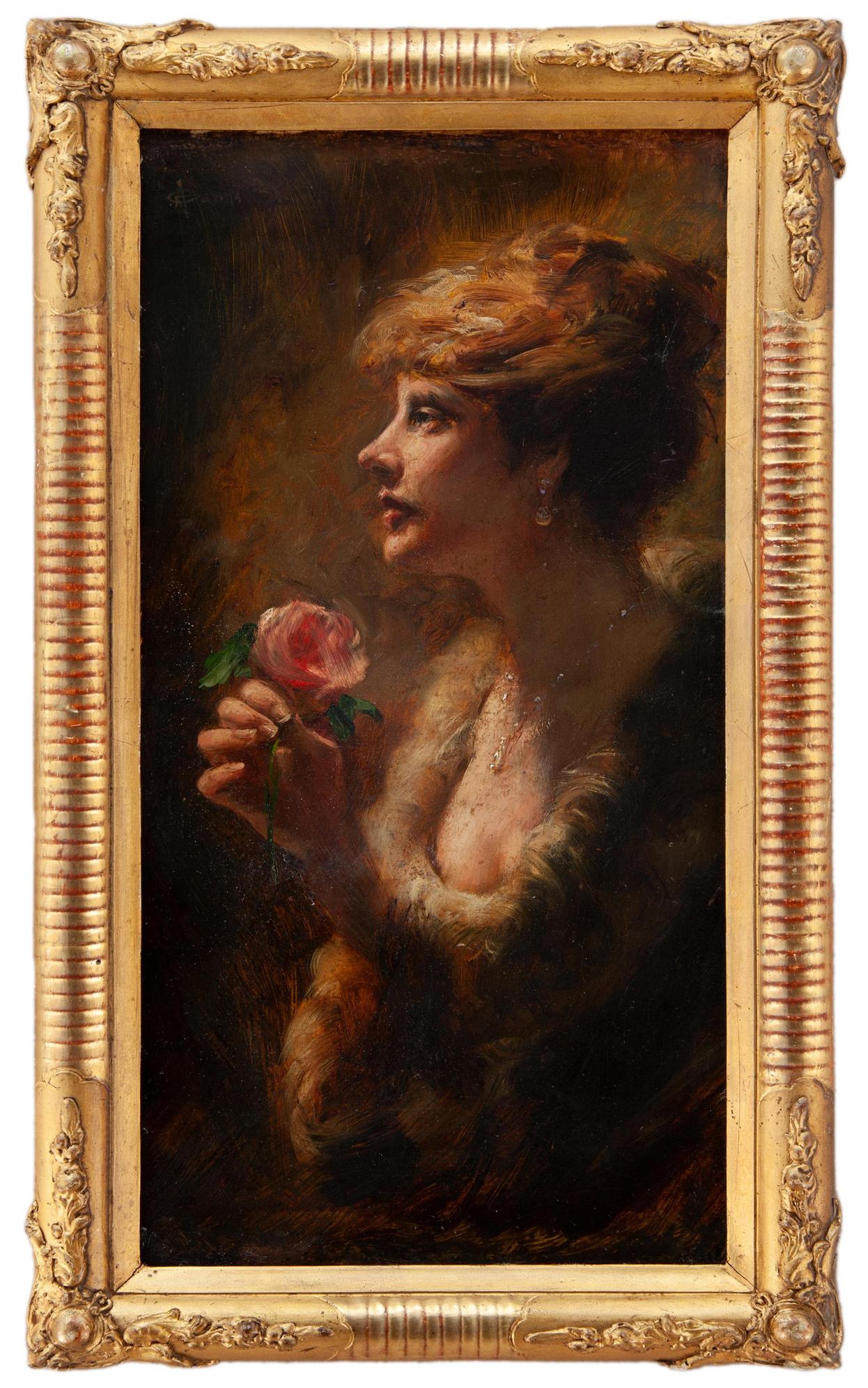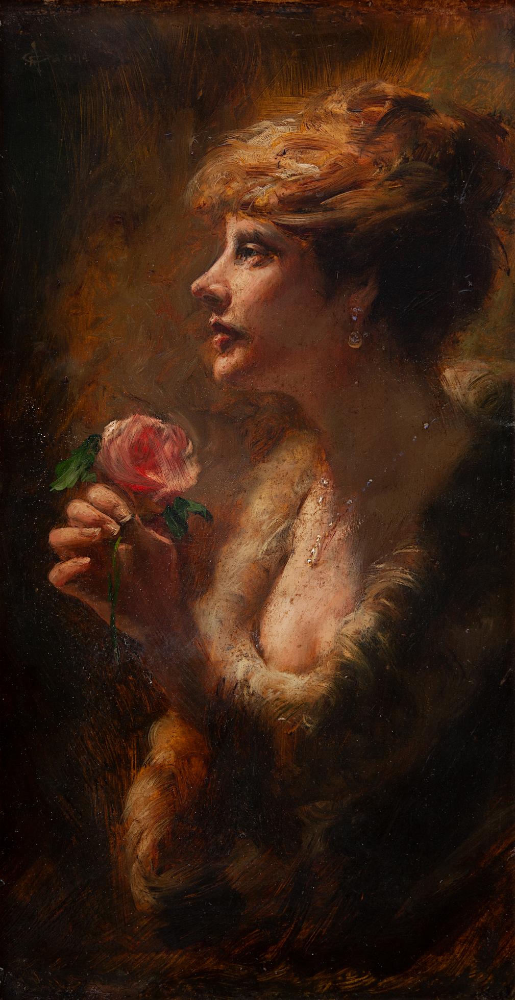 Angelo Garino Torino 1860 - Nizza 1945 Nobildonna Olio su cartone cm 56,5x26,5