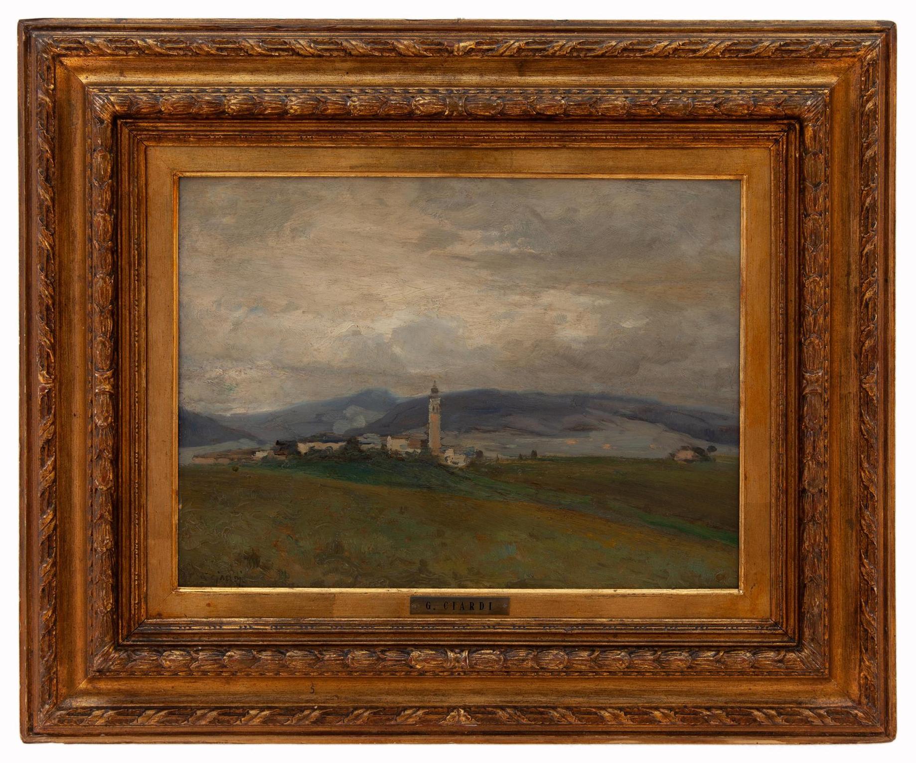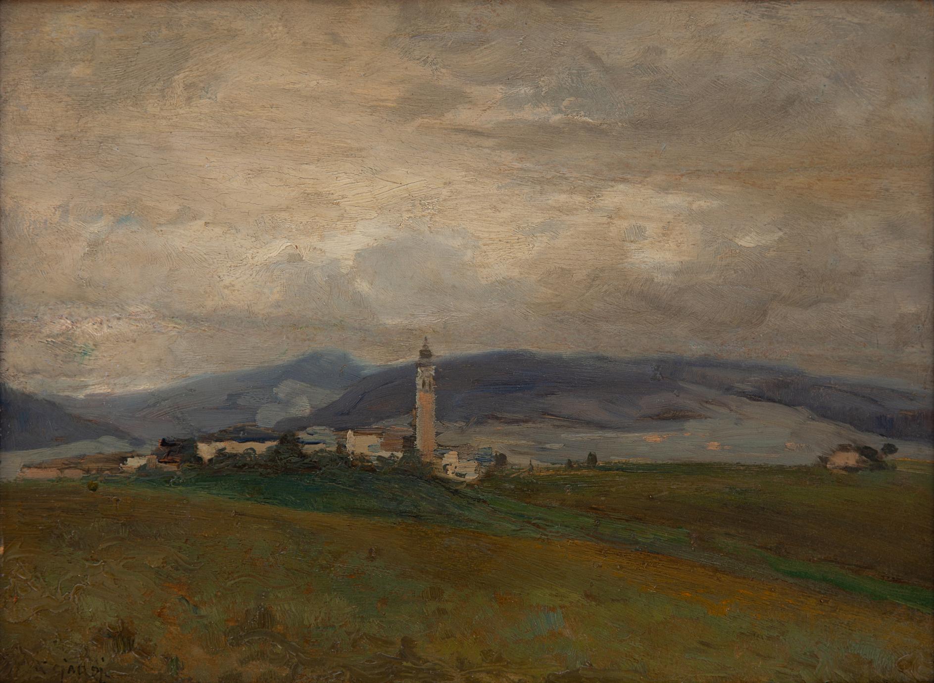 Guglielmo Ciardi Venezia 1842-1917 Giornata uggiosa ( Carnia ) Olio su tavola cm 29x39,5