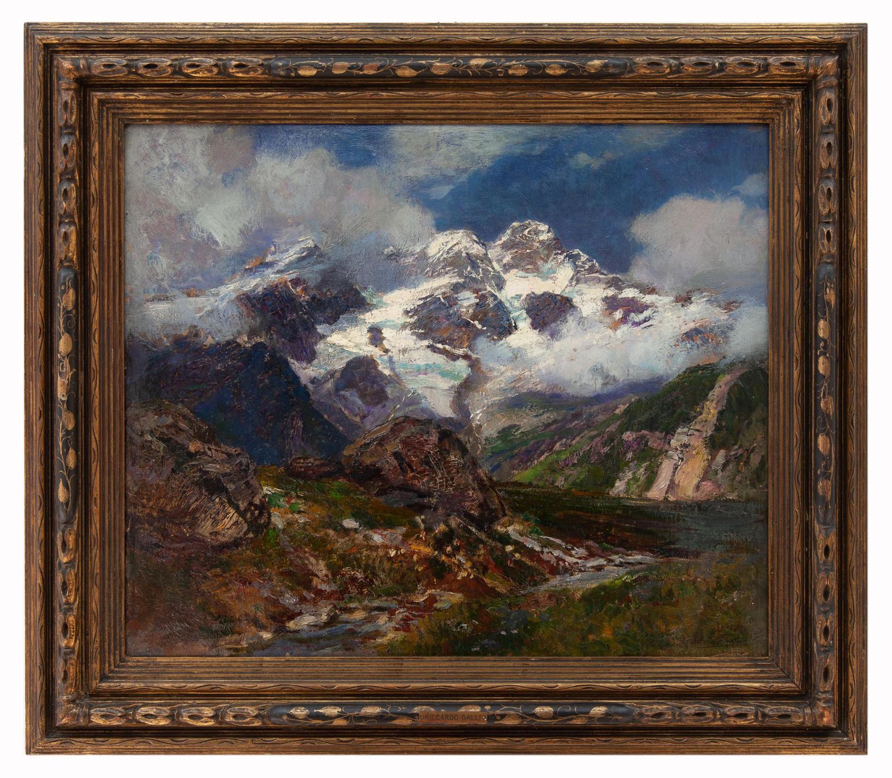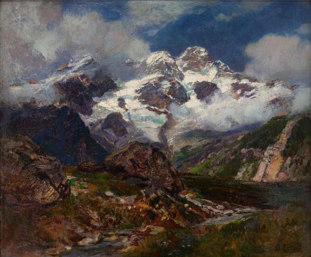 Riccardo Galli Milano 1869 - Barzio (LC) 1944 Il Monte Rosa dall'Alpe Campo Olio su tela applicata cm 48,5x59