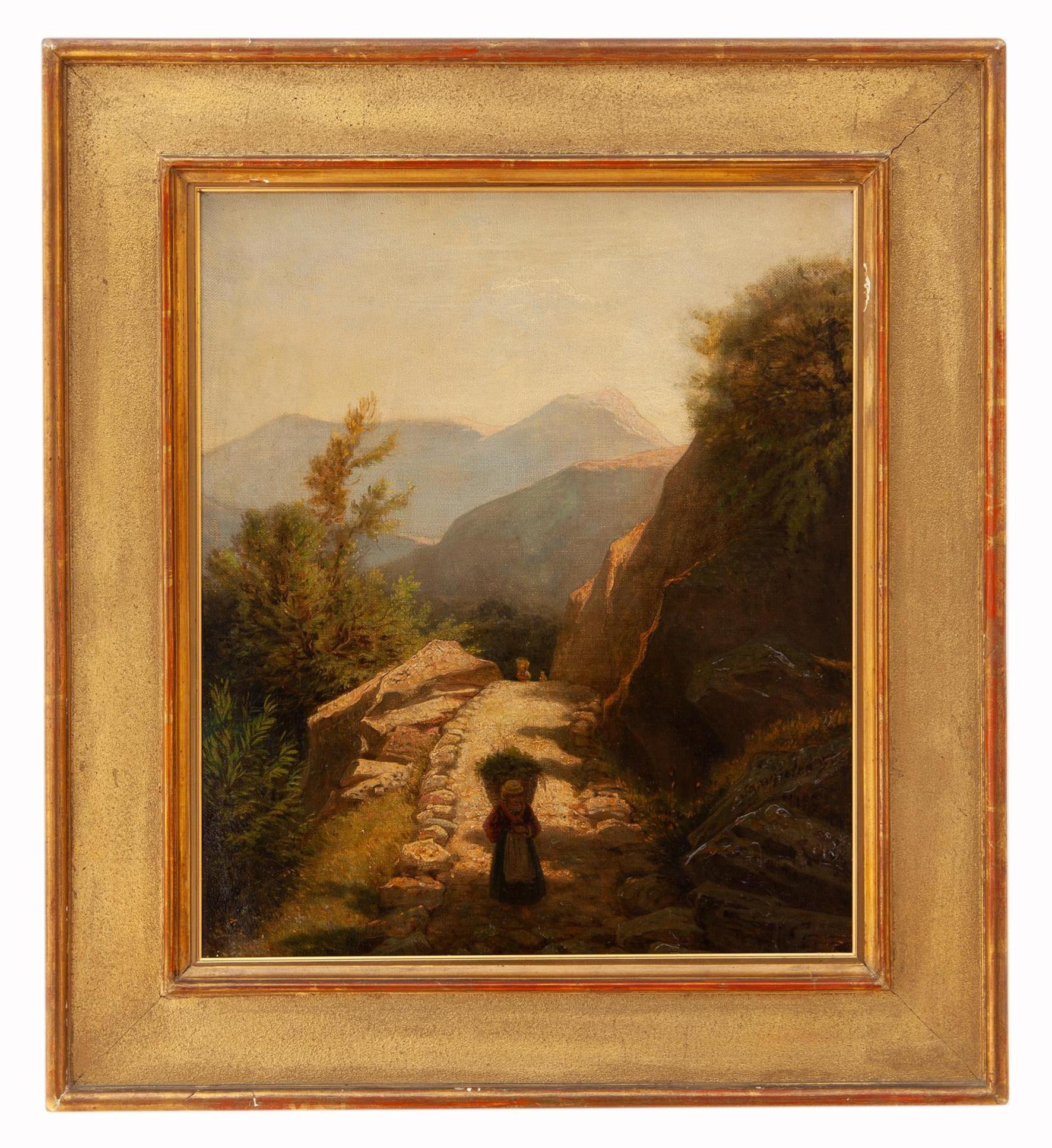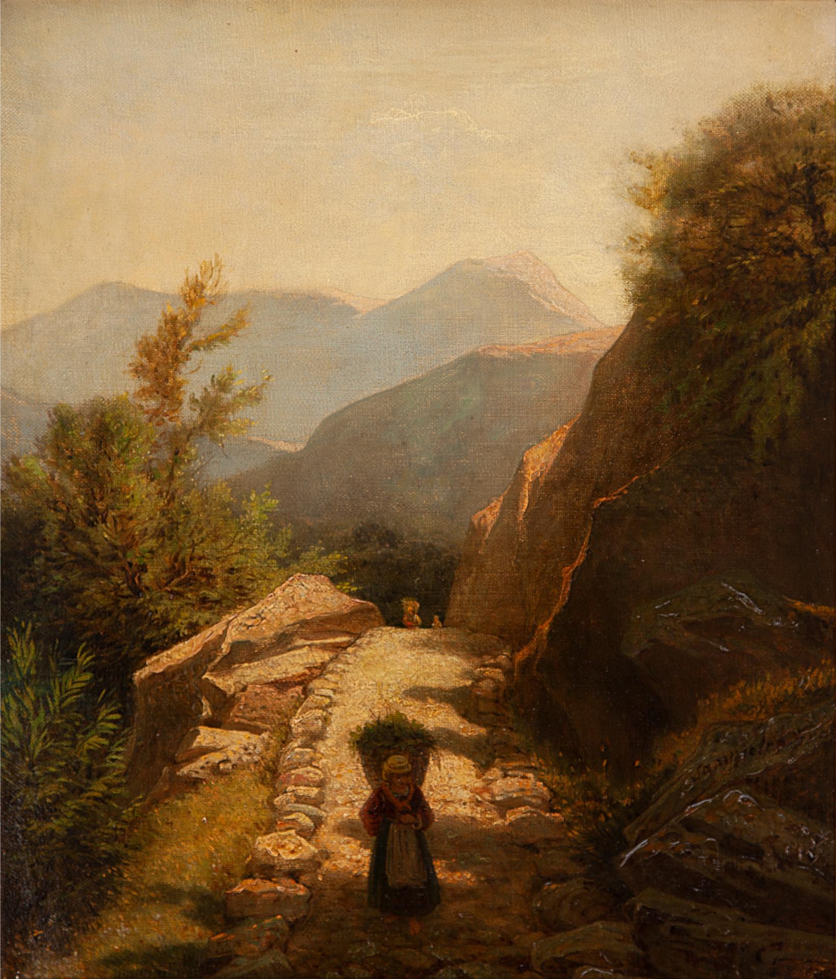Francesco Sampietro Garlasco (PV) 1815 - 1896 Lungo il sentiero Olio su tela cm 46x37,5