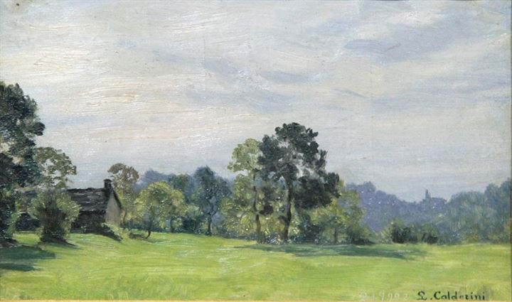 CALDERINI LUIGI Torino 1880 - 1973 "Paesaggio di campagna" 1902 15,5x26,5...