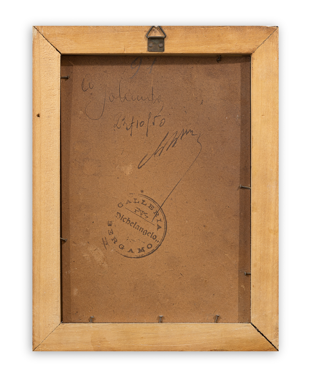 Timbro della Galleria Michelangelo (BG) al retro della tavola protettiva