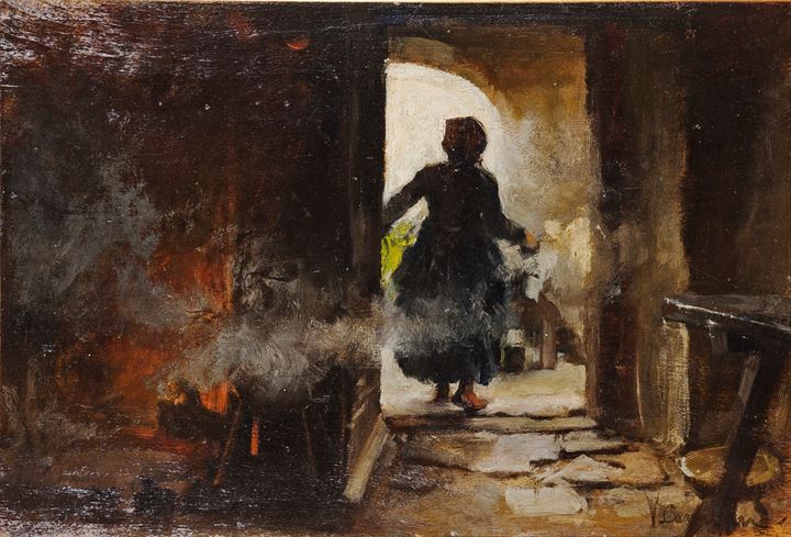 CAVALLERI VITTORIO Torino 1860 - 1938 "Figura in controluce" 29x44 olio su...