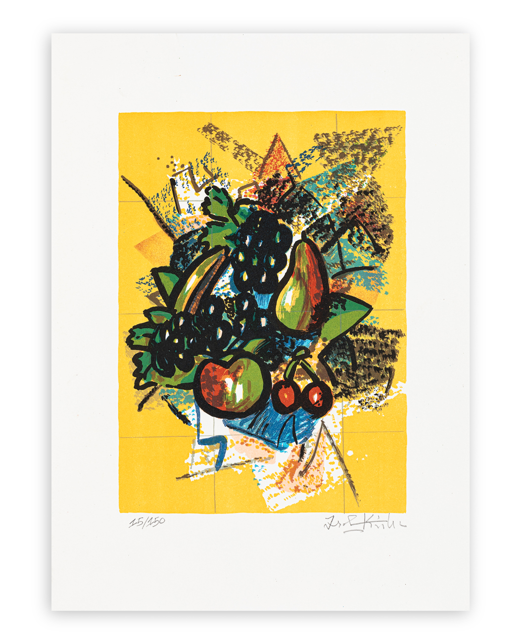 Firma e numerazione (Esemplare 15/150) a matita al fronte