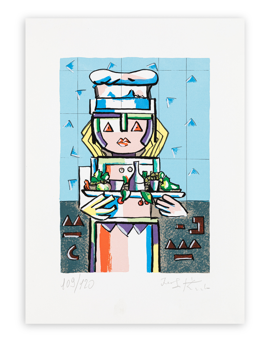 Firma e numerazione (Esemplare 109/120) a matita al fronte