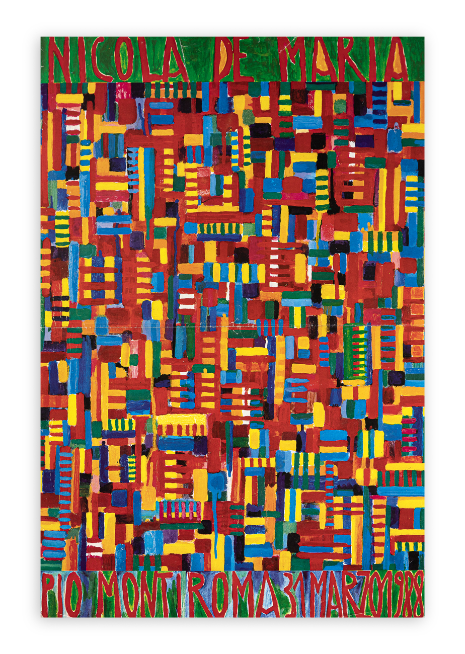 Locandina edita in occasione della persona dell'Artista tenutasi presso la Galleria Pio Monti, Roma, Marzo 1988