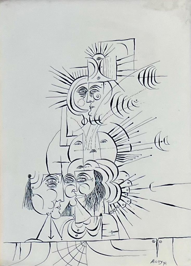 ALCOY EDUARDO BARCELONA (SPAGNA) 1930 Volti geometrici Disegno 40,00x32,00...
