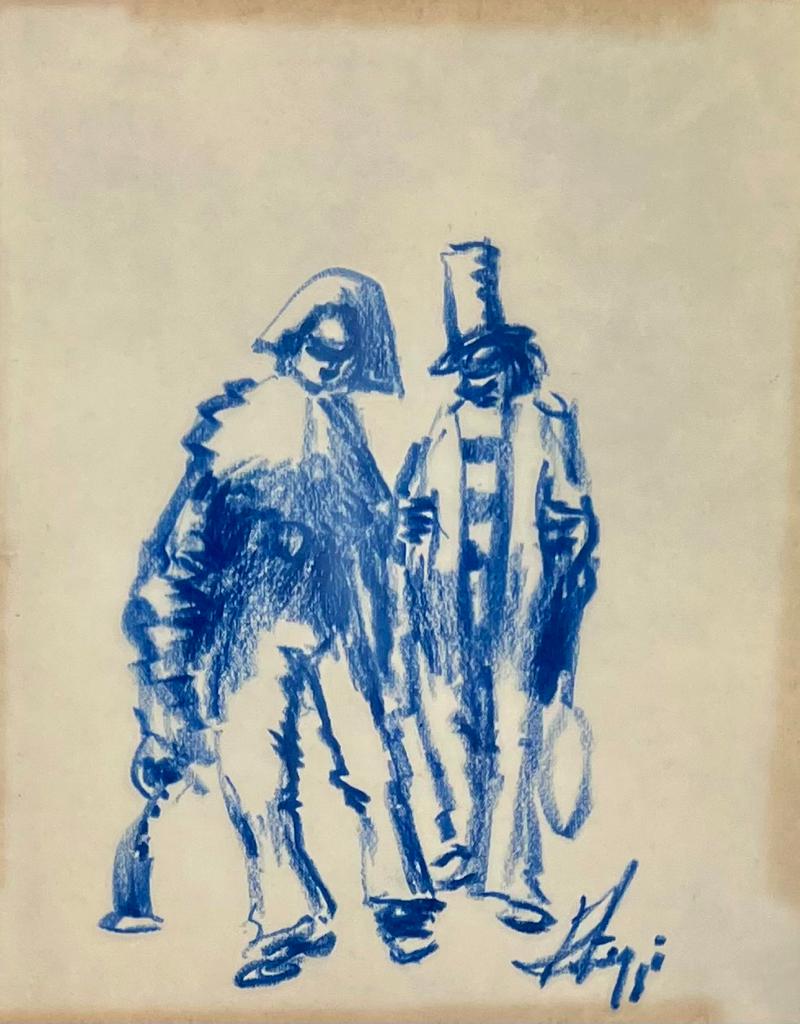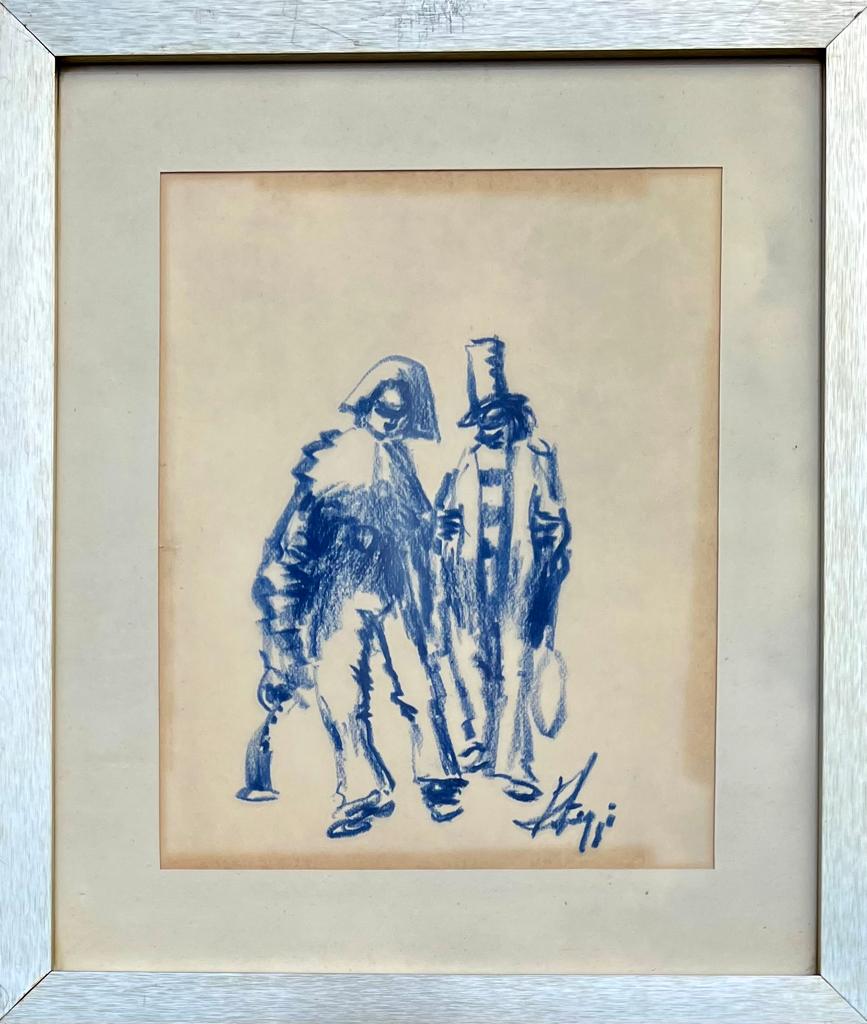 FIRMA NON DECIFRABILE TORINO (TORINO) 1950 Due persone in maschera Pastello...
