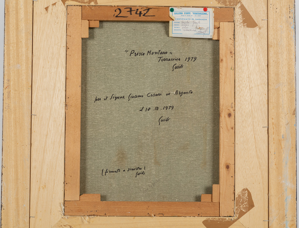 on the reverse: label of Galleria d'Arte Ponte Vecchio Florence