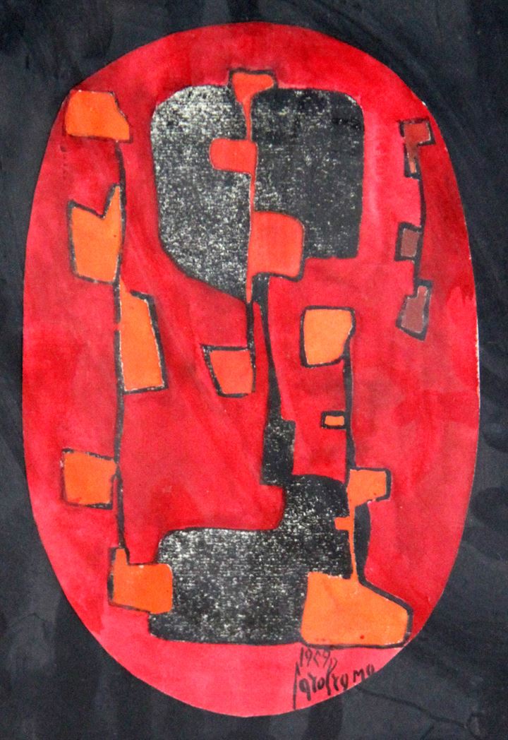 CAROLRAMA Torino 1918 "Composizione in rosso" 1959 21,5x14 ovale tecnica...