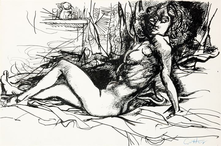 GUTTUSO RENATO Bagheria (PA) 1911 - 1987 Roma "Nudo sdraiato" 35x50 china su...