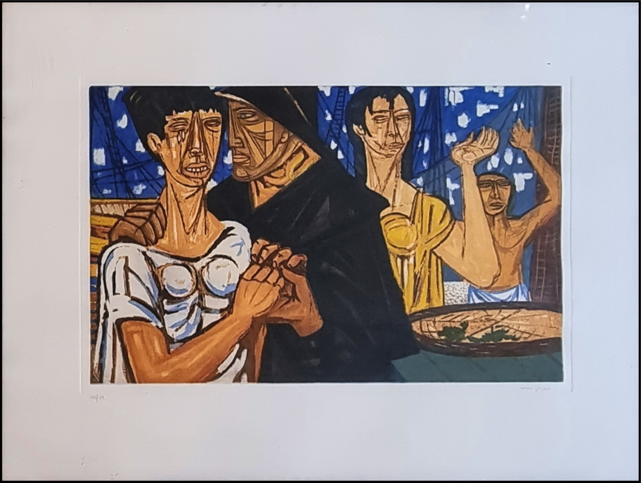 MIGNECO GIUSEPPE Messina 1903 - Milano 1997 "Senza titolo" Incisione serigrafica su cartoncino pesante cm 79x59. Firmata sul fronte in basso a destra, tiratura 103/125 a sinistra.