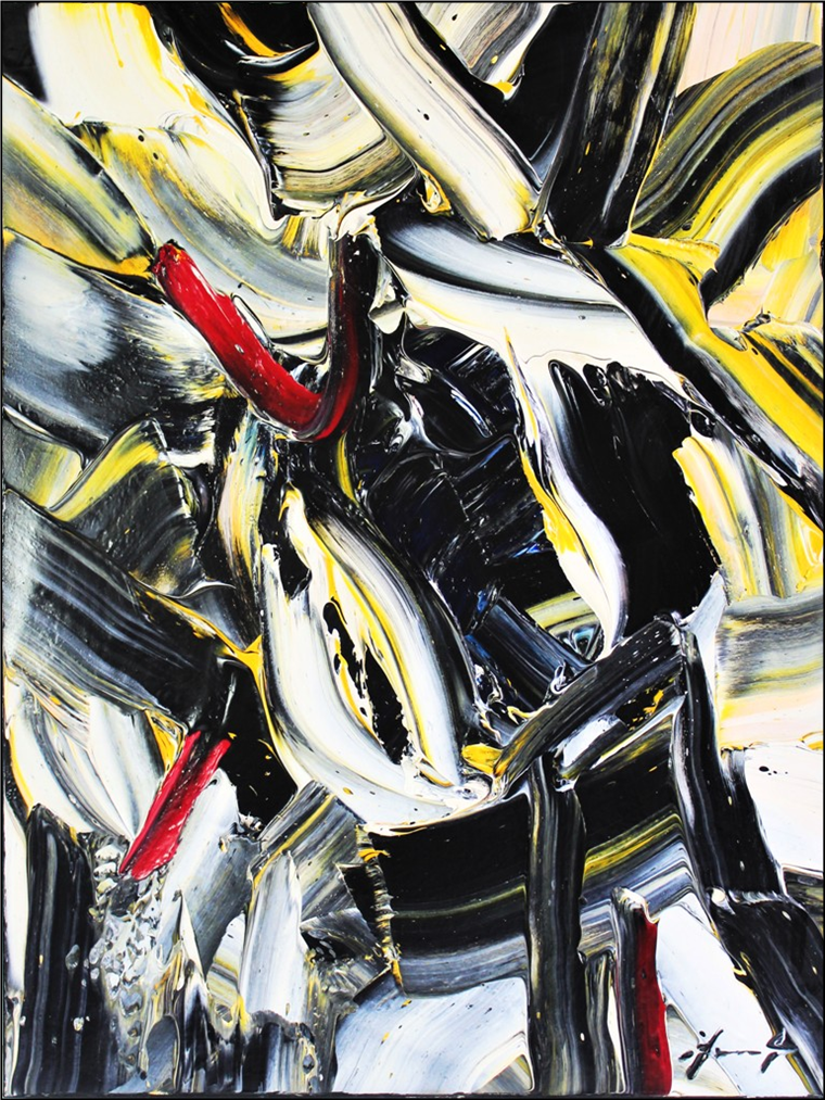 DE LUTTI PIERLUIGI Monfalcone 1959 "Al centro" Olio su tela cm 50x80. Firmato sul fronte in basso a destra. Sul retro firma, titolo e misure. Autentica dell'artista su foto.