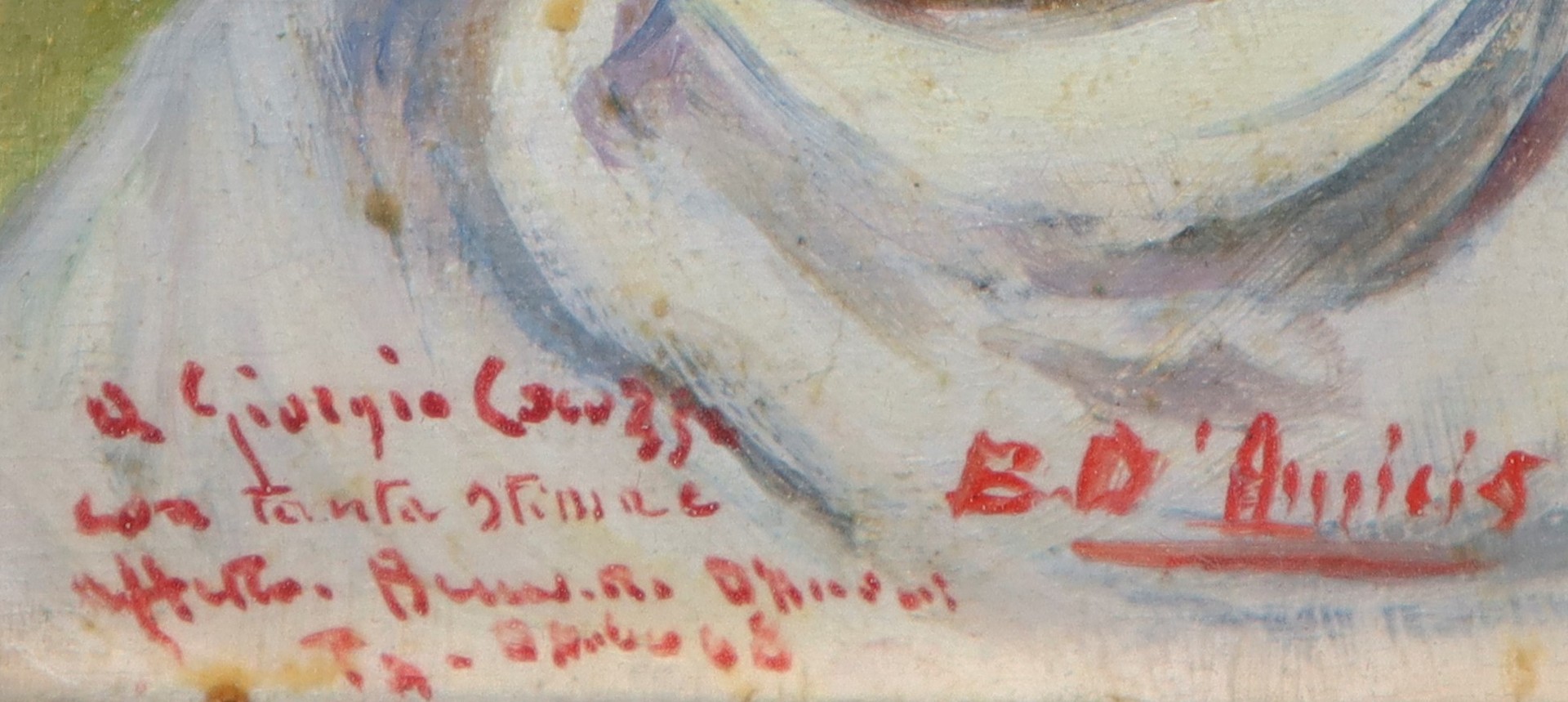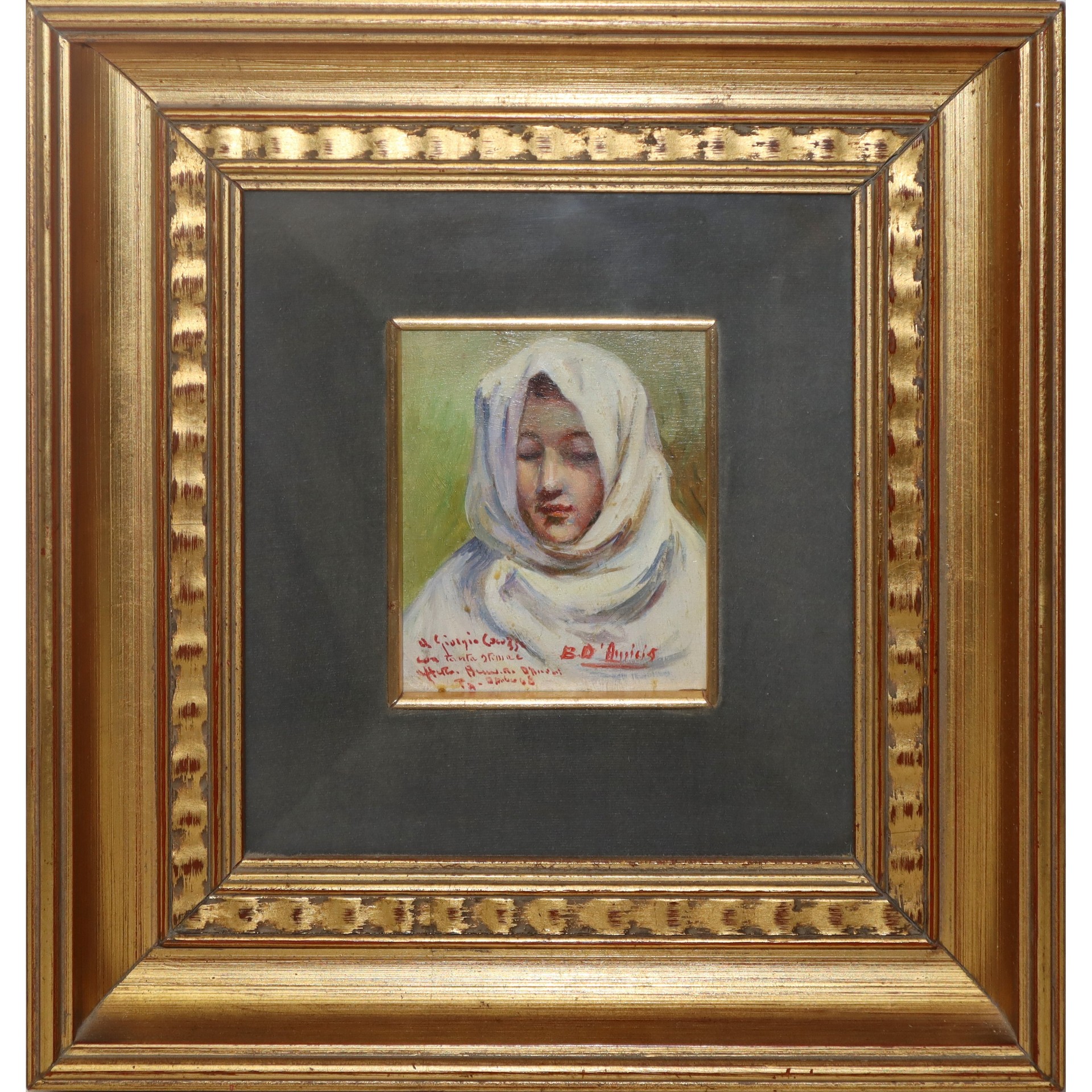 Benedetto De Amicis - Volto di donna Cm 10 x 12, in cornice cm 32 x 30 Olio su tavoletta Firma e dedica sul fronte