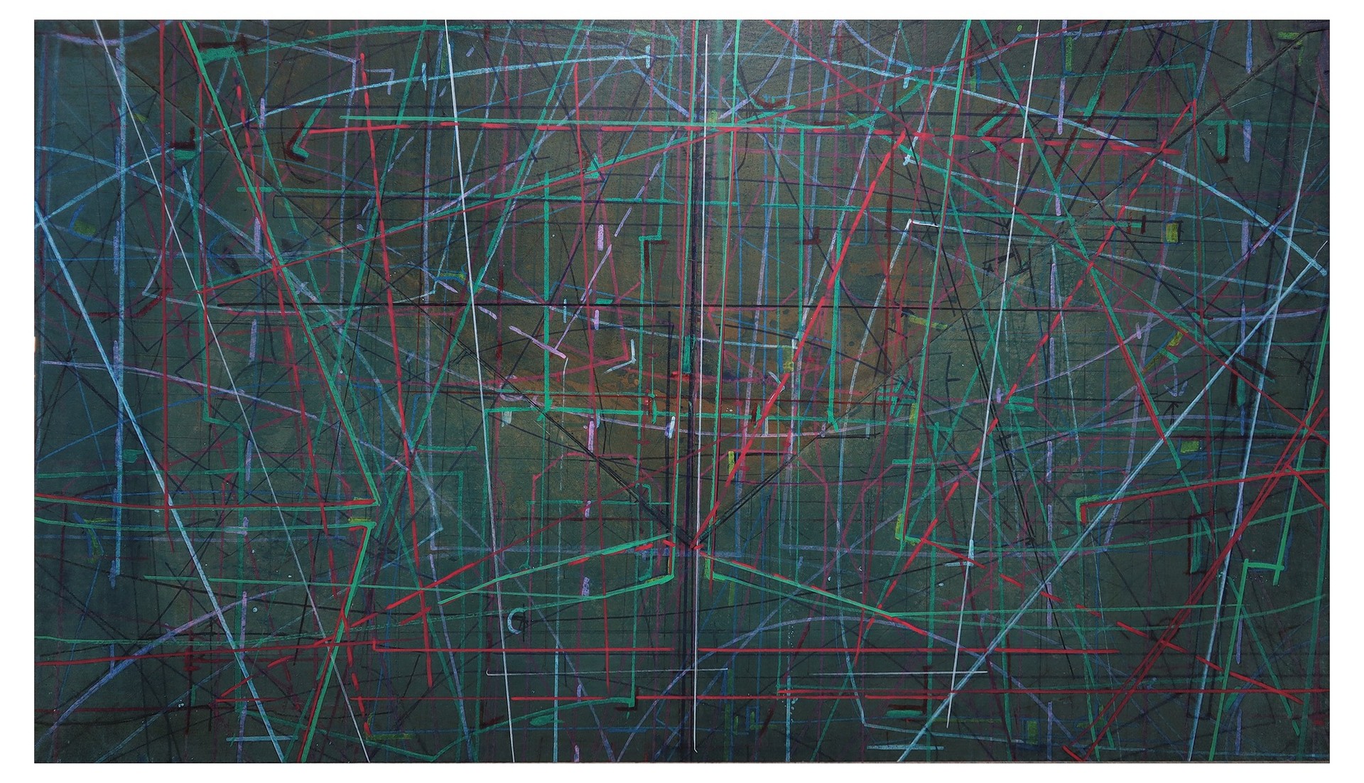 Luca Matti (Firenze 1964) - M cm 118 x cm 205 Olio e tecnica mista su carta applicata a legno Firmato sul retro, titolato e datato Ottobre 91.